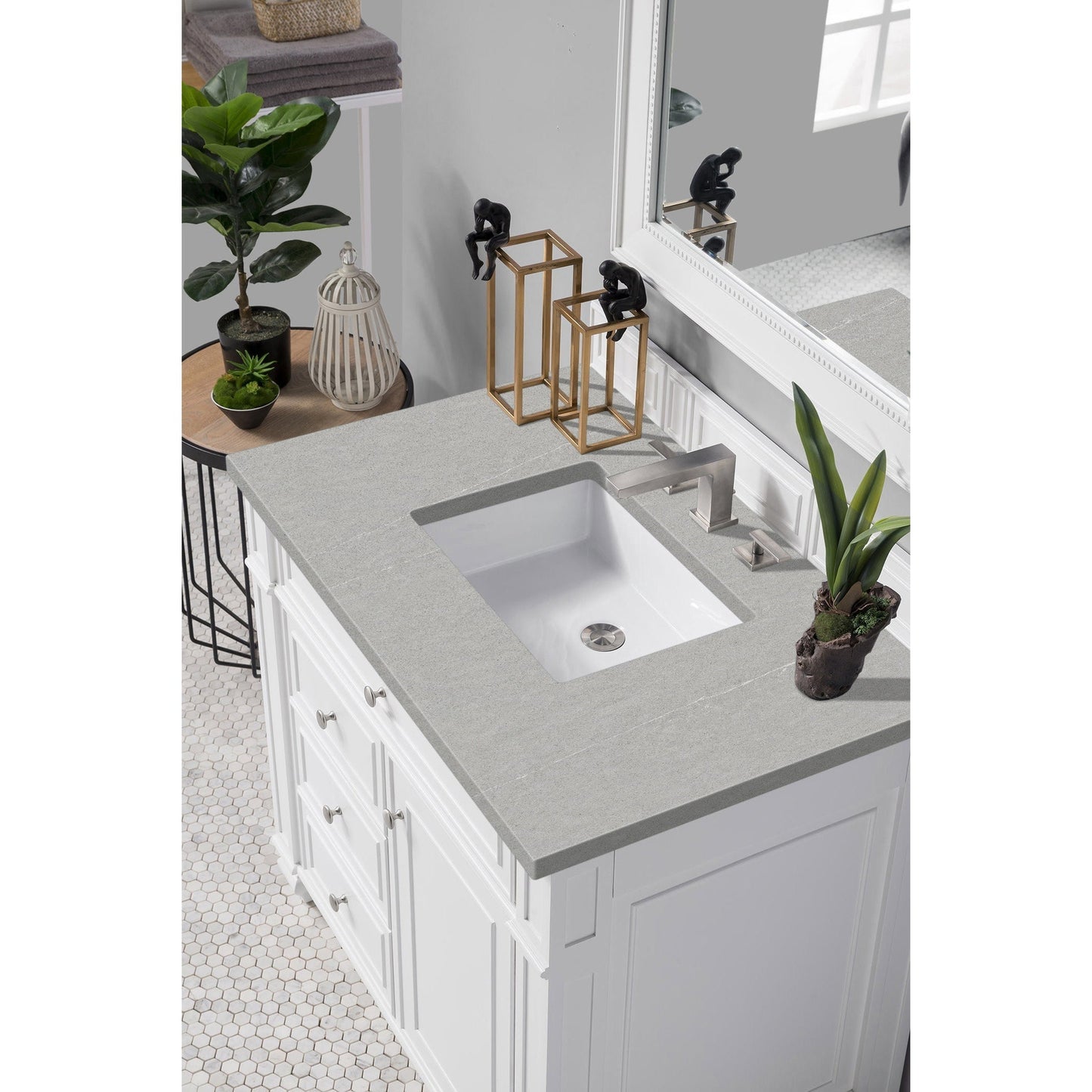 James Martin Vanities Bristol 36" Bright White Single Vanity With 3cm Eternal Serena Quartz Top