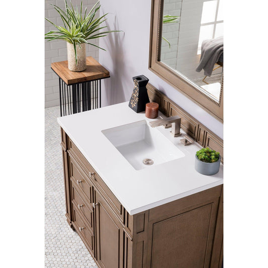 James Martin Vanities Bristol 36" Whitewashed Walnut Single Vanity With 3cm White Zeus Quartz Top
