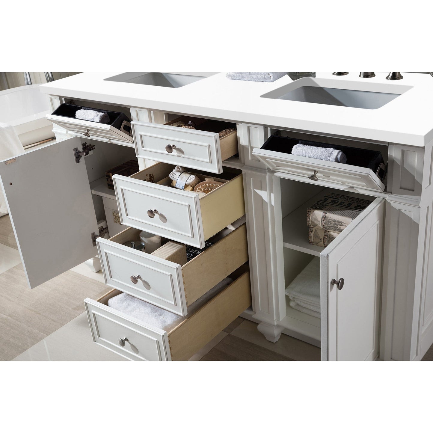 James Martin Vanities Bristol 60" Bright White Double Vanity With 3cm White Zeus Quartz Top