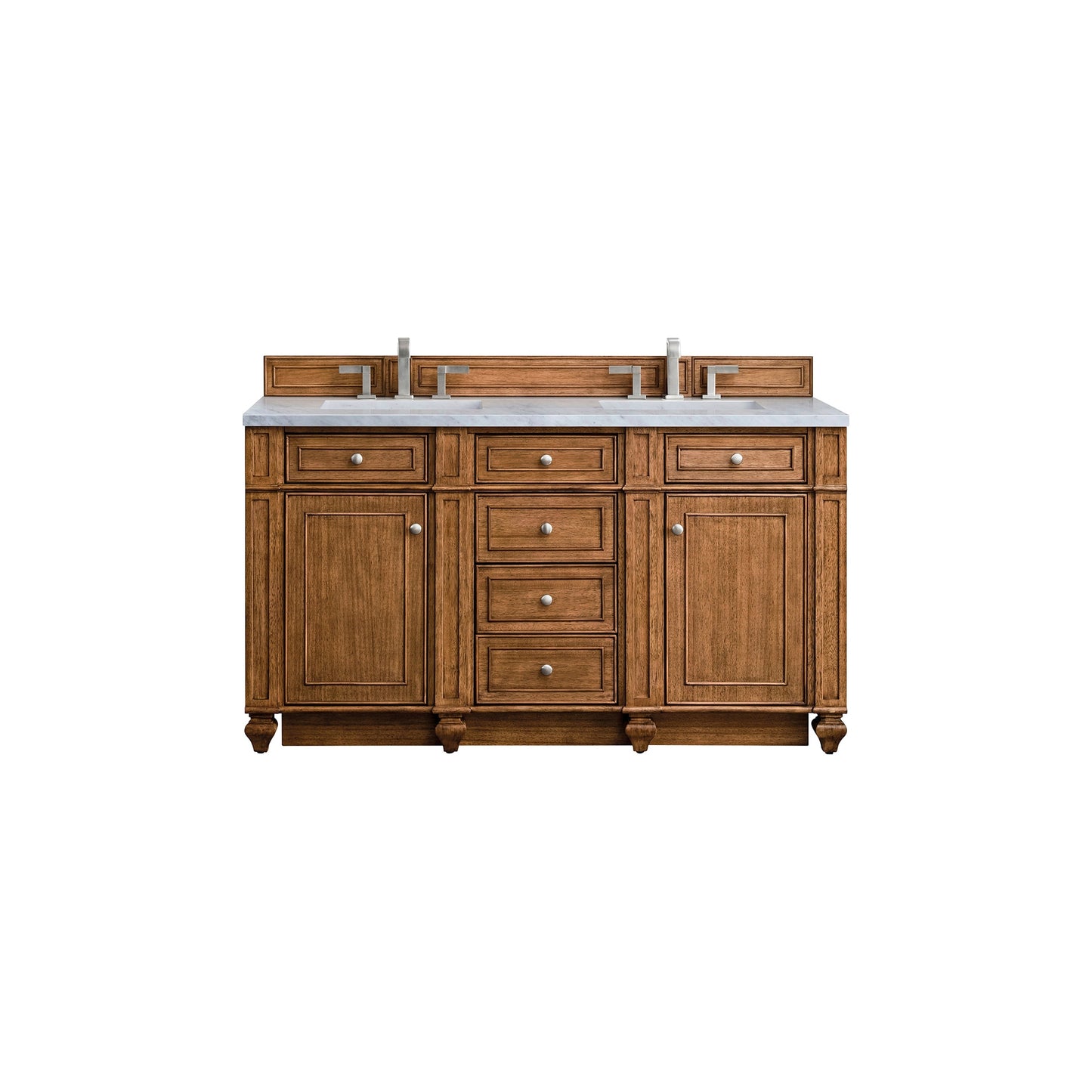 James Martin Vanities Bristol 60" Saddle Brown Double Vanity With 3cm Carrara Marble Top