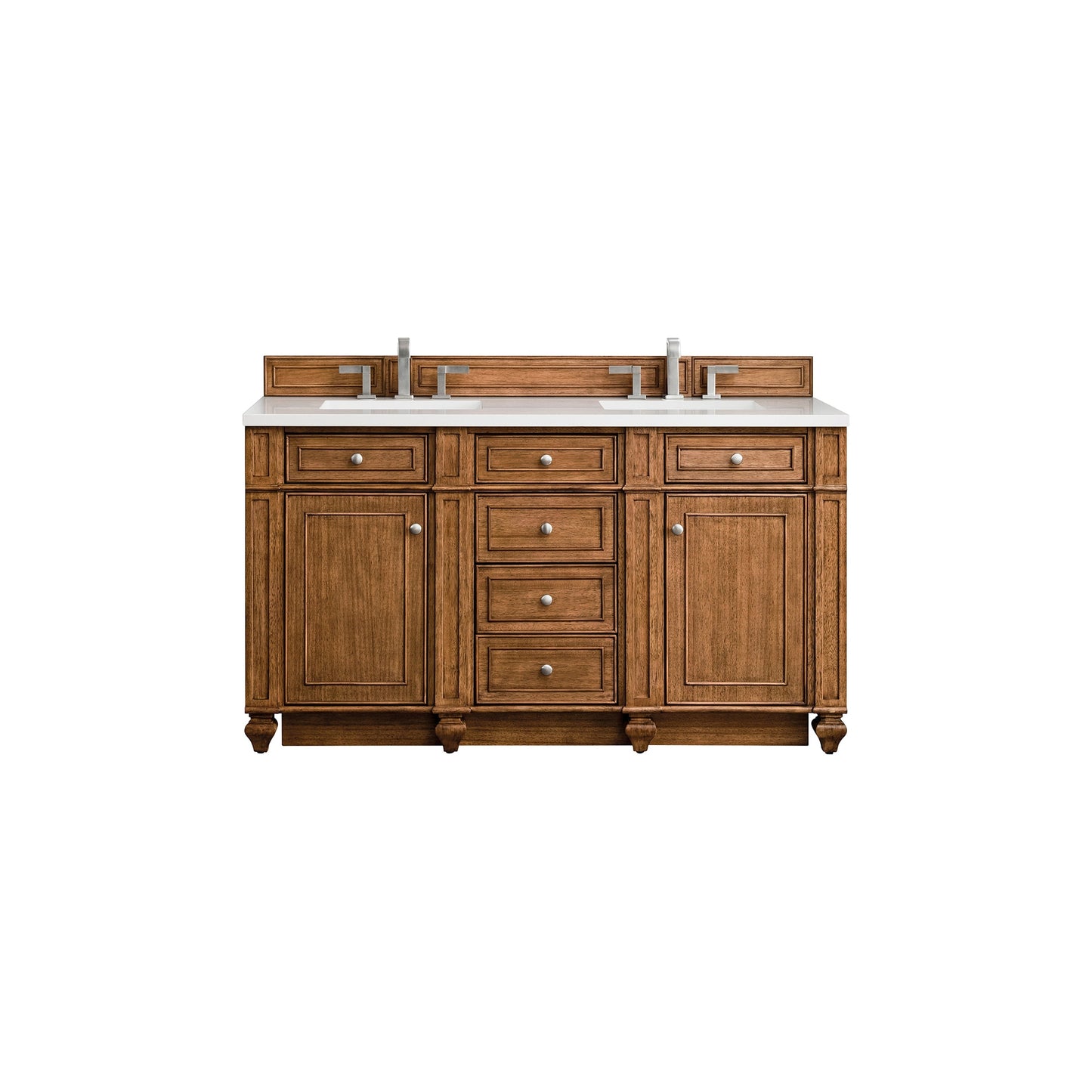 James Martin Vanities Bristol 60" Saddle Brown Double Vanity With 3cm White Zeus Quartz Top