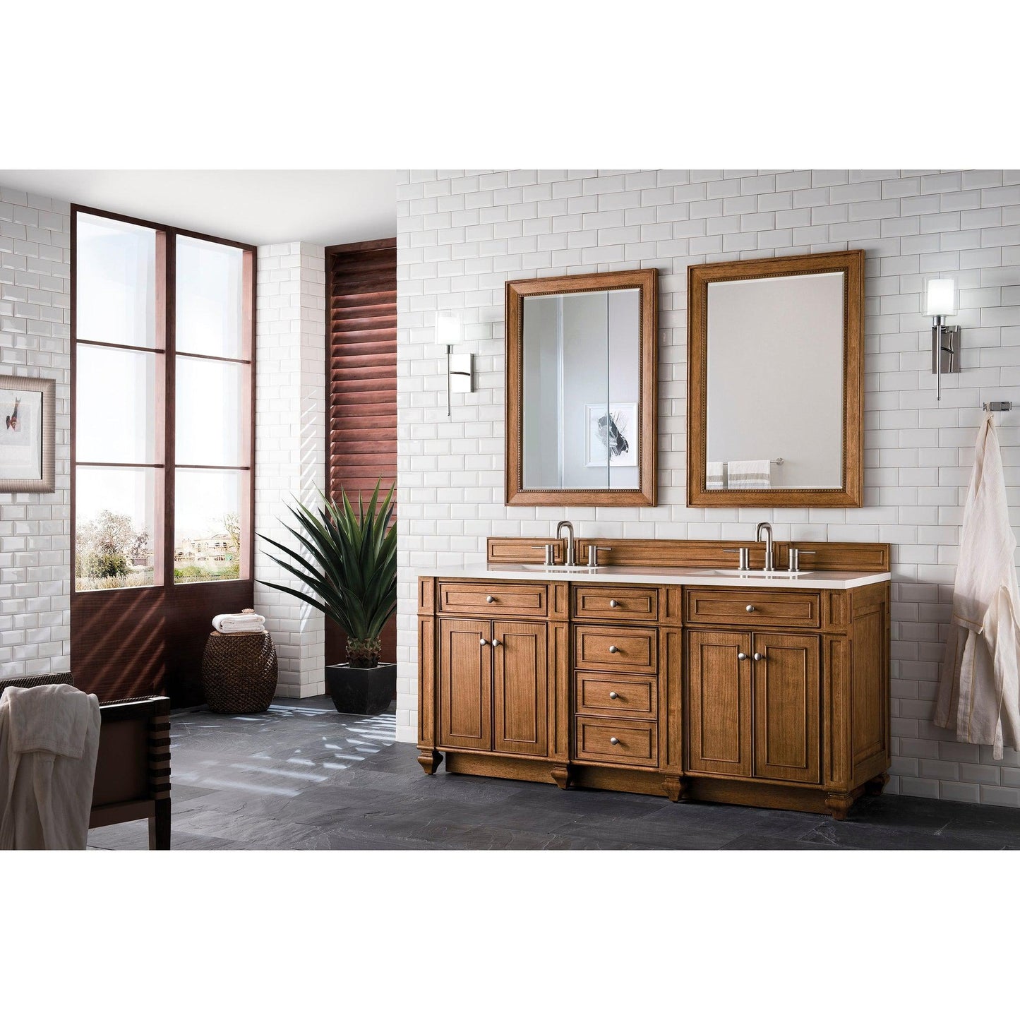 James Martin Vanities Bristol 72" Saddle Brown Double Vanity With 3cm White Zeus Quartz Top