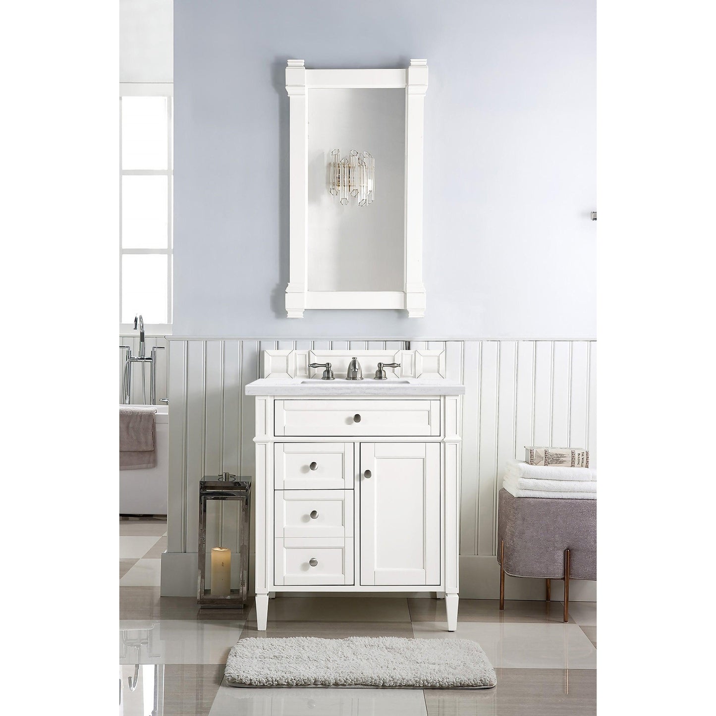 James Martin Vanities Brittany 30" Bright White Single Vanity With 3cm Arctic Fall Solid Surface Top
