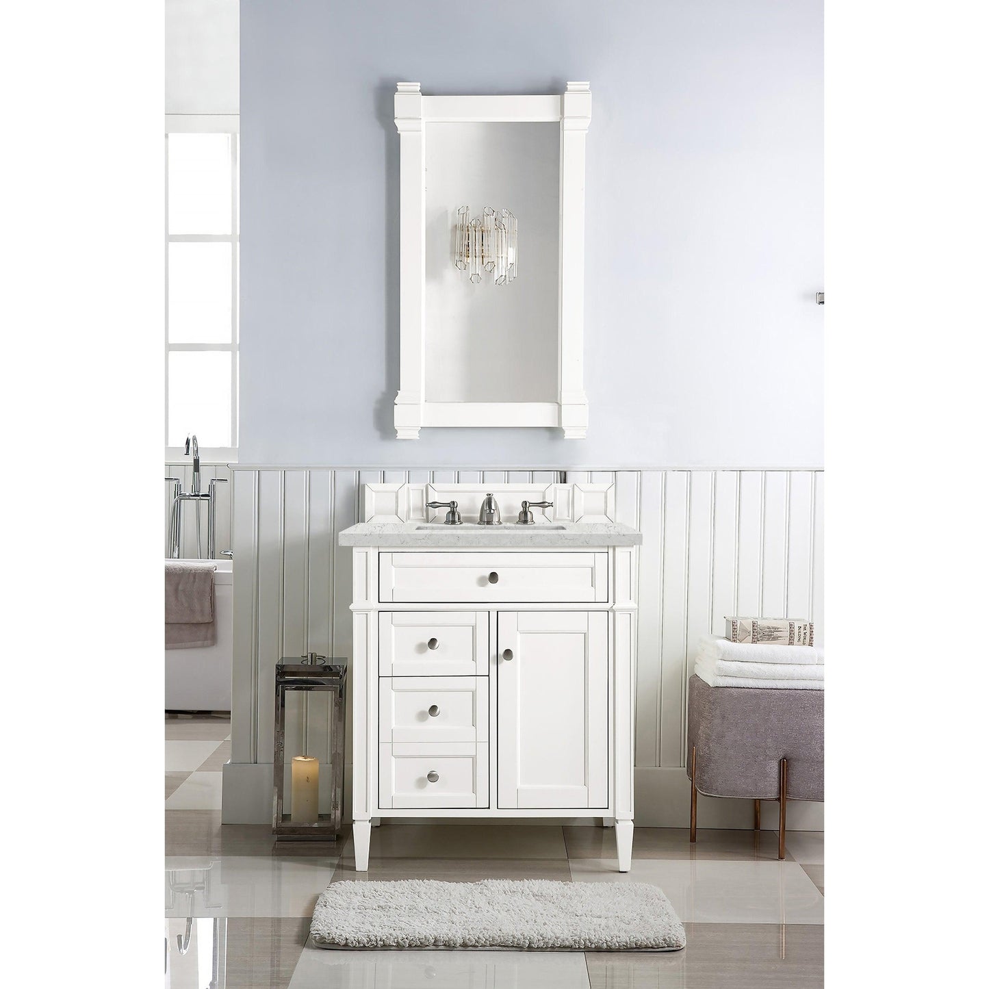 James Martin Vanities Brittany 30" Bright White Single Vanity With 3cm Eternal Jasmine Pearl Quartz Top