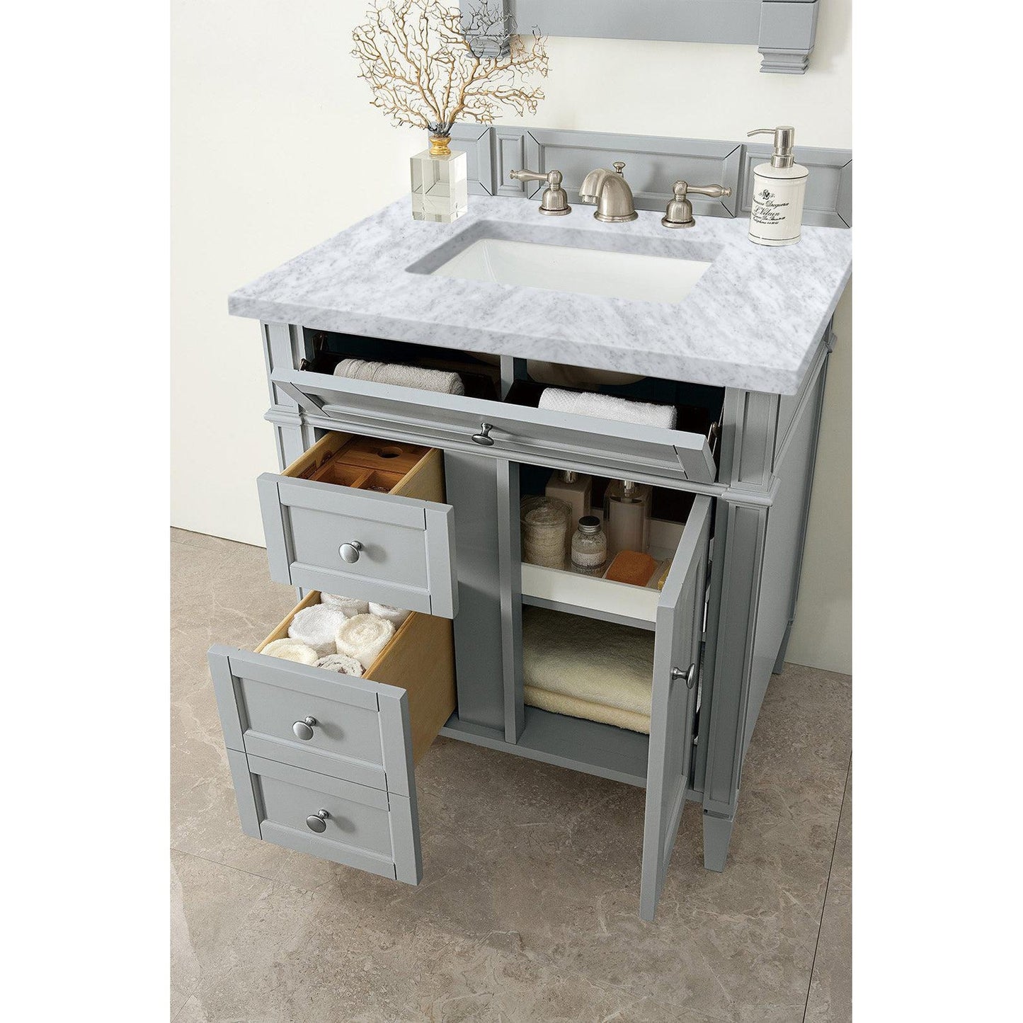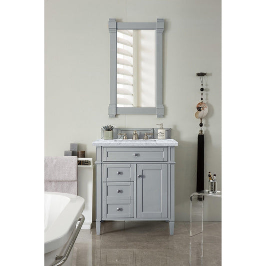 James Martin Vanities Brittany 30" Urban Gray Single Vanity With 3cm Carrara Marble Top