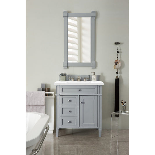 James Martin Vanities Brittany 30" Urban Gray Single Vanity With 3cm White Zeus Quartz Top