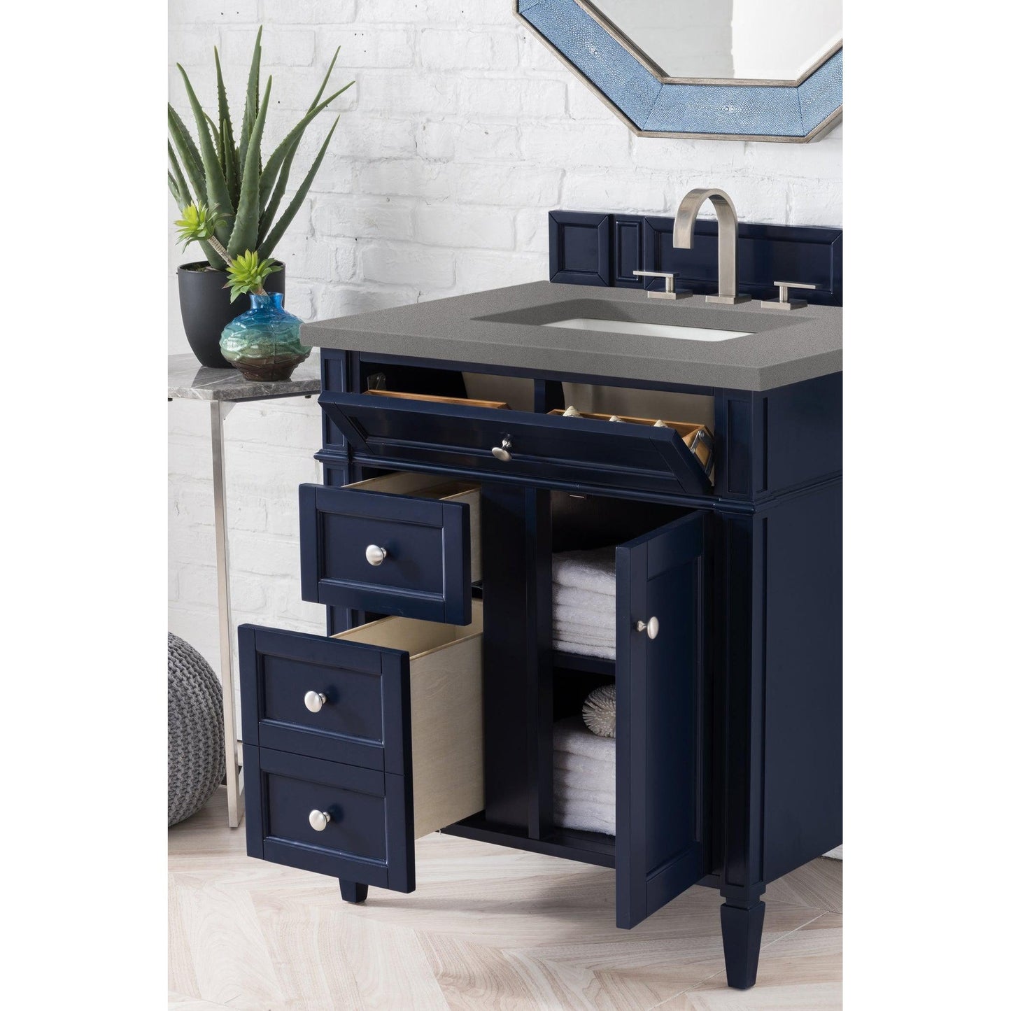 James Martin Vanities Brittany 30" Victory Blue Single Vanity With 3cm Grey Expo Quartz Top