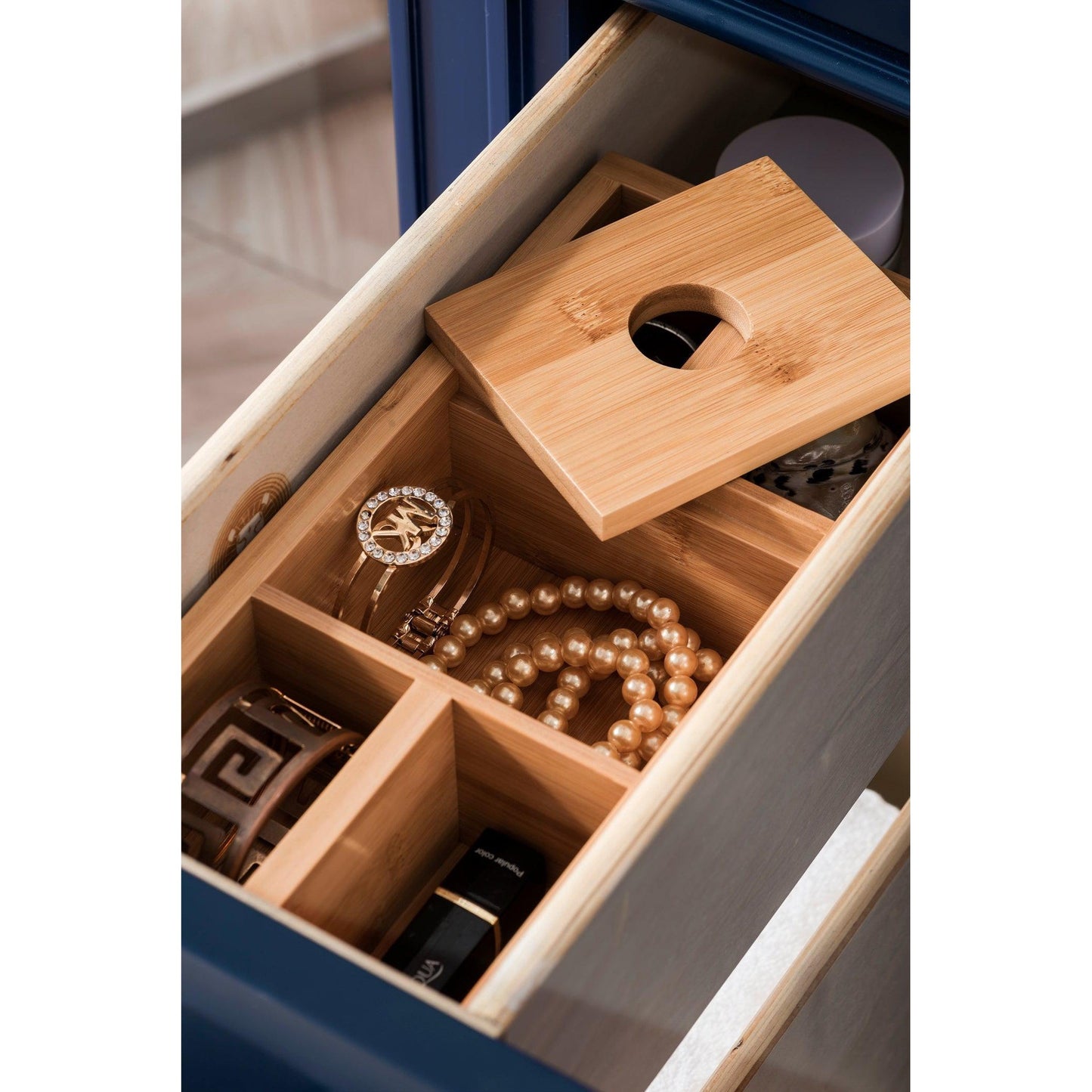 The Brittany 30" Urban Gray vanity by James Martin Vanities features classic details that bridge both Traditional and Transitional styles. This beautiful piece of furniture includes one hide-away tip out, top row drawer plus two full-depth side drawers, one of which is double-height for storage of taller items. This cabinet also has one door, which conceals an interior shelf for ample storage, and a bamboo drawer organizer. Hand crafted in birch solids and birch veneers with satin nickel hardware. Matching wood backsplash is included. The look is completed with a 3cm eased edge Grey Expo top by Silestone and a premium solid surface sink.