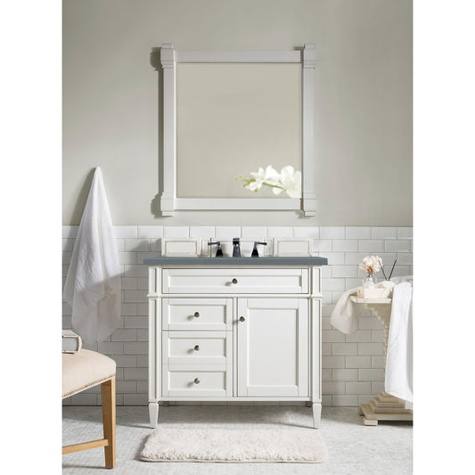 James Martin Vanities Brittany 36" Bright White Single Vanity With 3cm Cala Blue Quartz Top