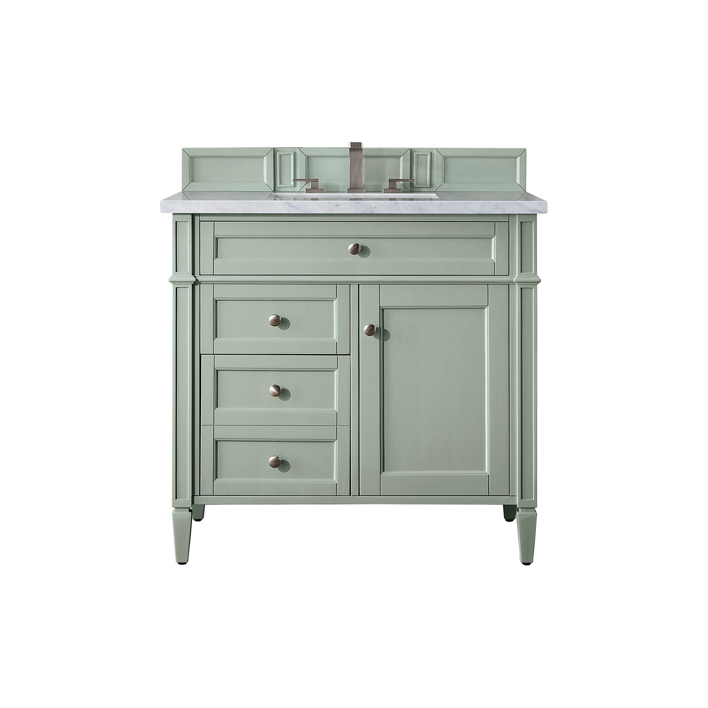 James Martin Vanities Brittany 36" Sage Green Single Vanity With 3cm Carrara Marble Top