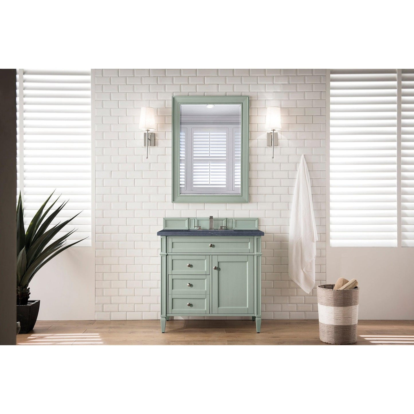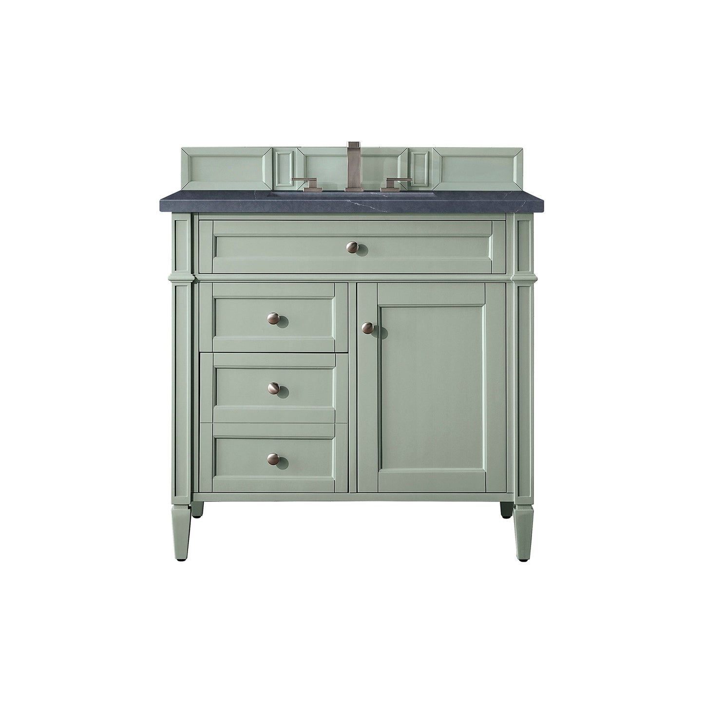 James Martin Vanities Brittany 36" Sage Green Single Vanity With 3cm Charcoal Soapstone Quartz Top