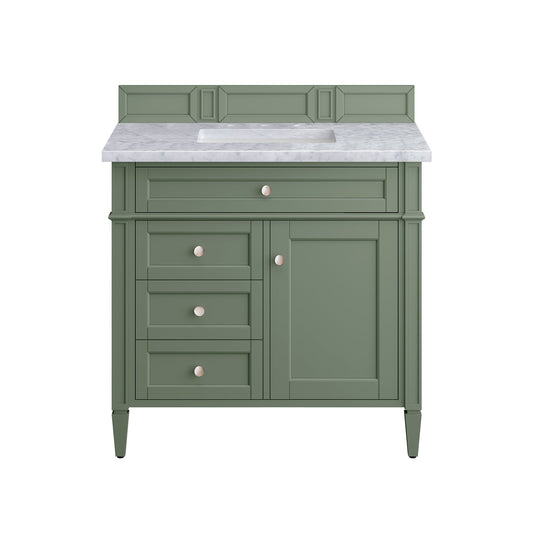 James Martin Vanities Brittany 36" Smokey Celadon Single Vanity With 3cm Carrara Marble Top