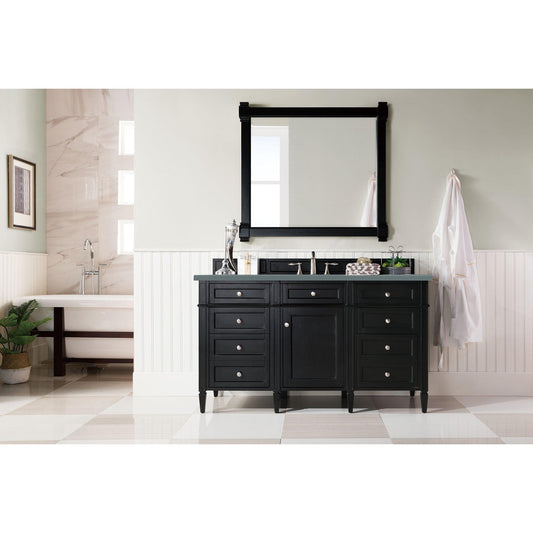 James Martin Vanities Brittany 60" Black Onyx Single Vanity With 3cm Cala Blue Quartz Top