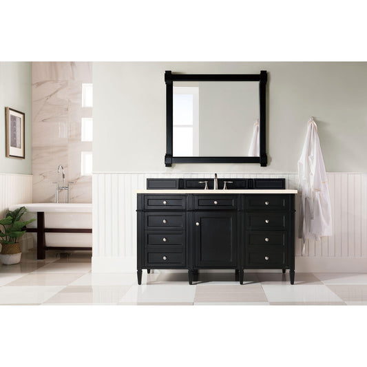 James Martin Vanities Brittany 60" Black Onyx Single Vanity With 3cm Eternal Marfil Quartz Top