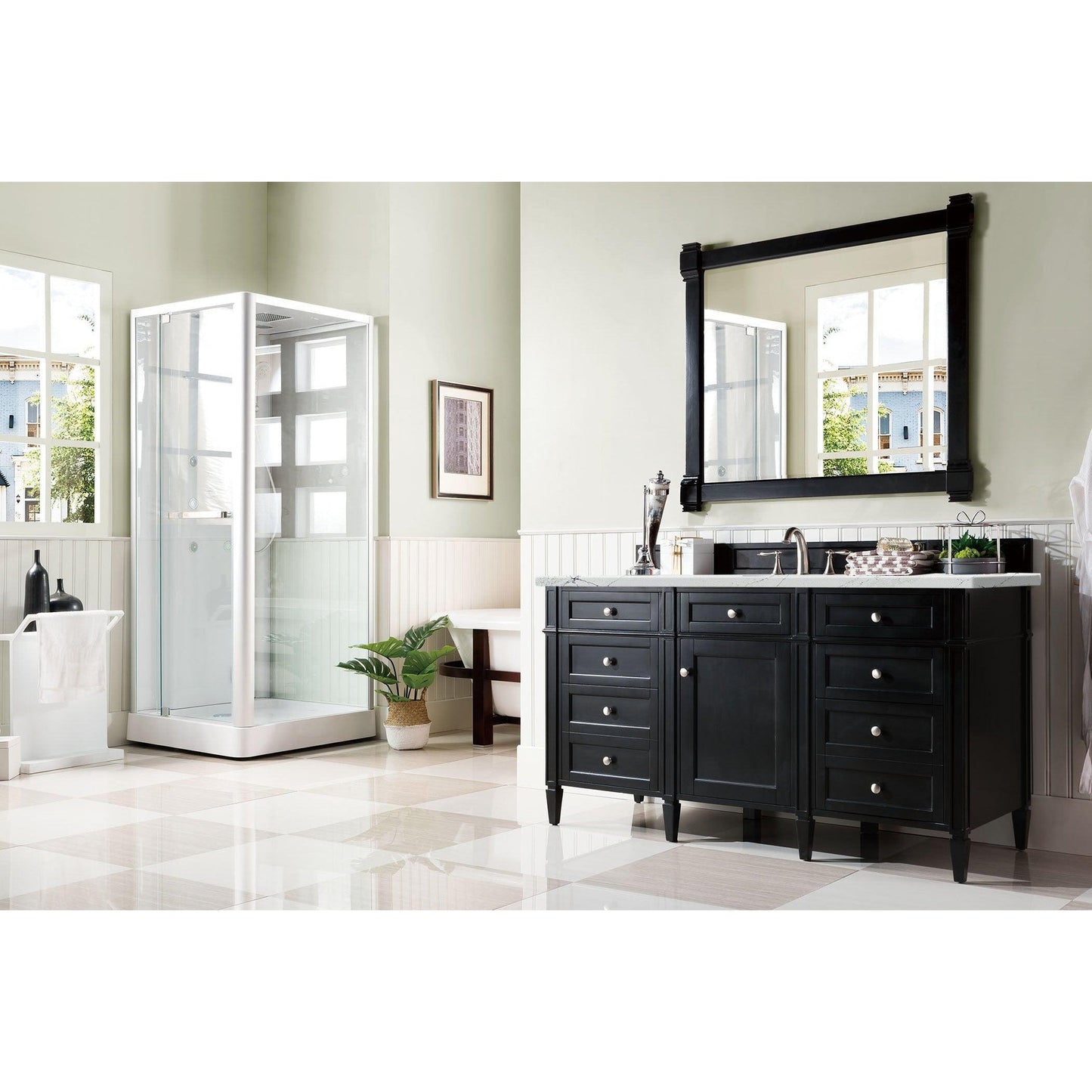 James Martin Vanities Brittany 60" Black Onyx Single Vanity With 3cm Ethereal Noctis Quartz Top