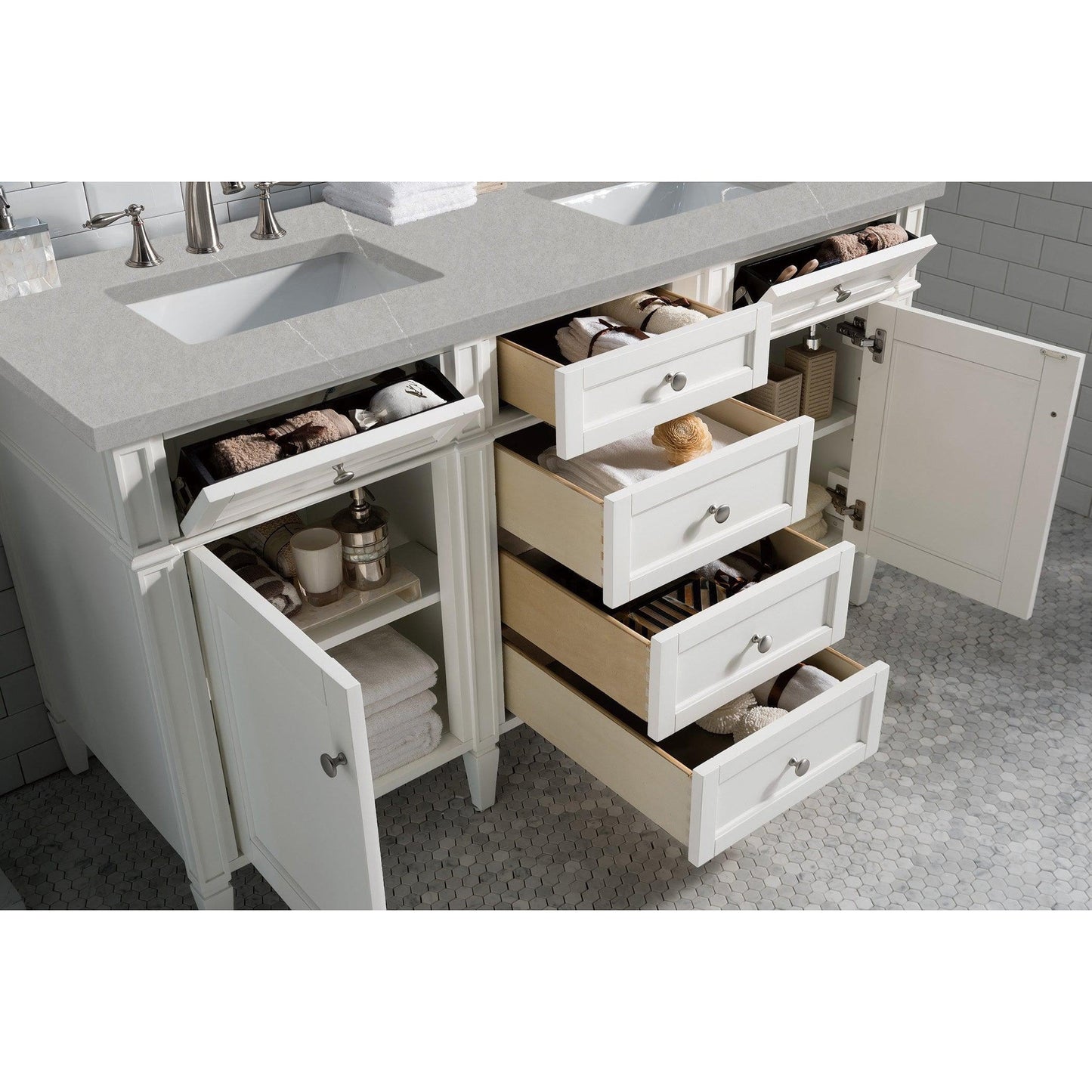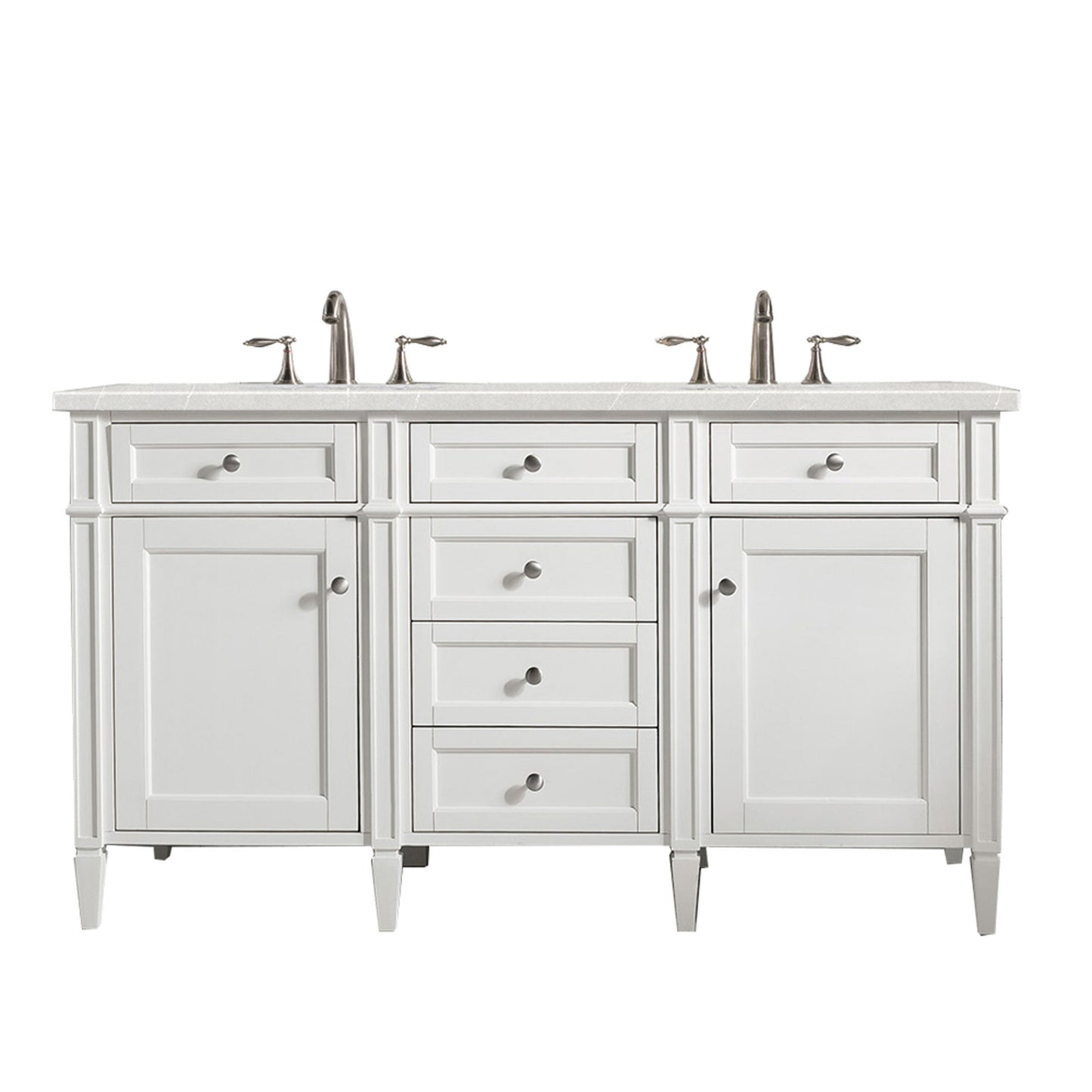 James Martin Vanities Brittany 60" Bright White Double Vanity With 3cm Eternal Serena Quartz Top