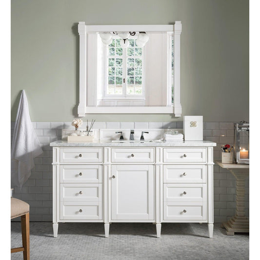 James Martin Vanities Brittany 60" Bright White Single Vanity With 3cm Carrara Marble Top