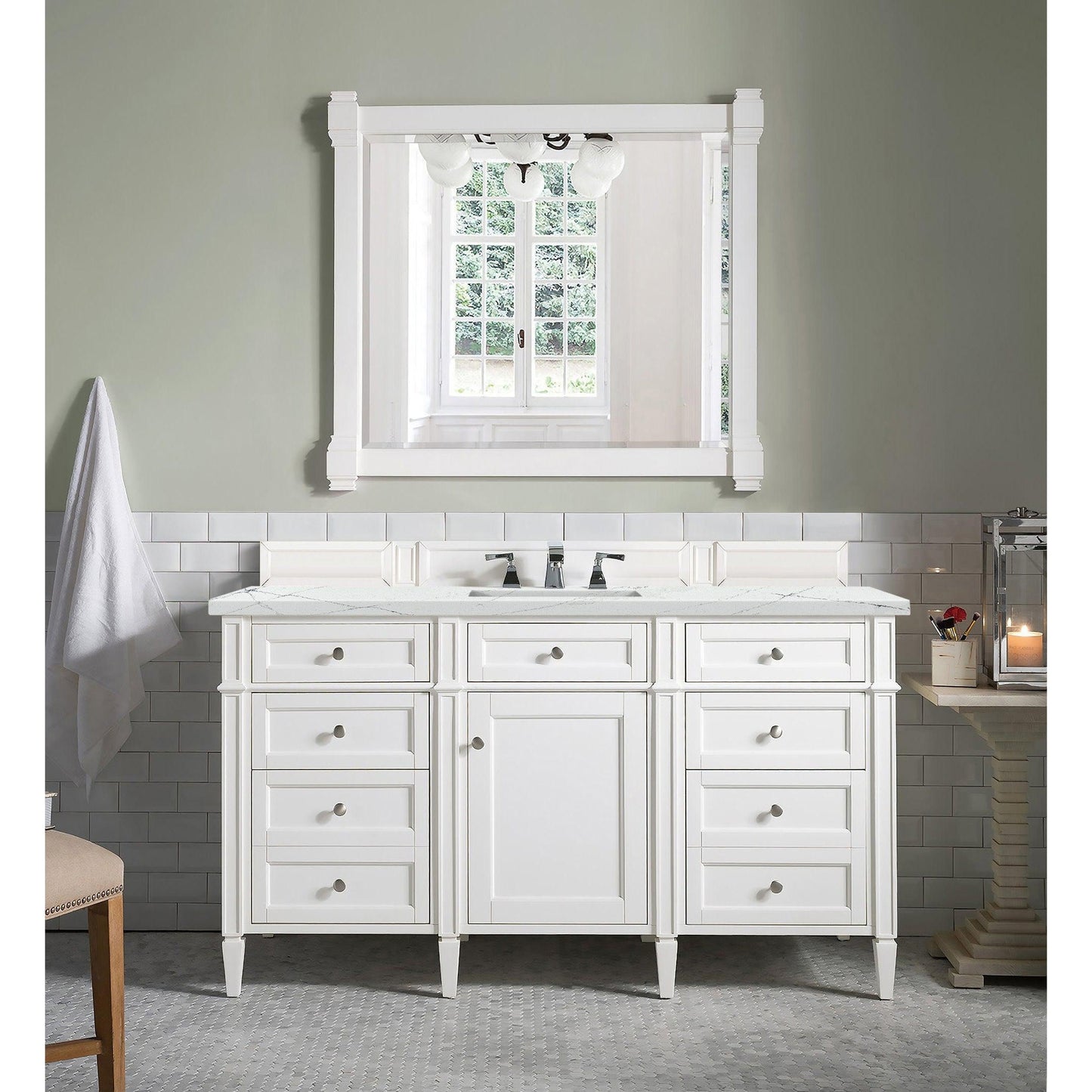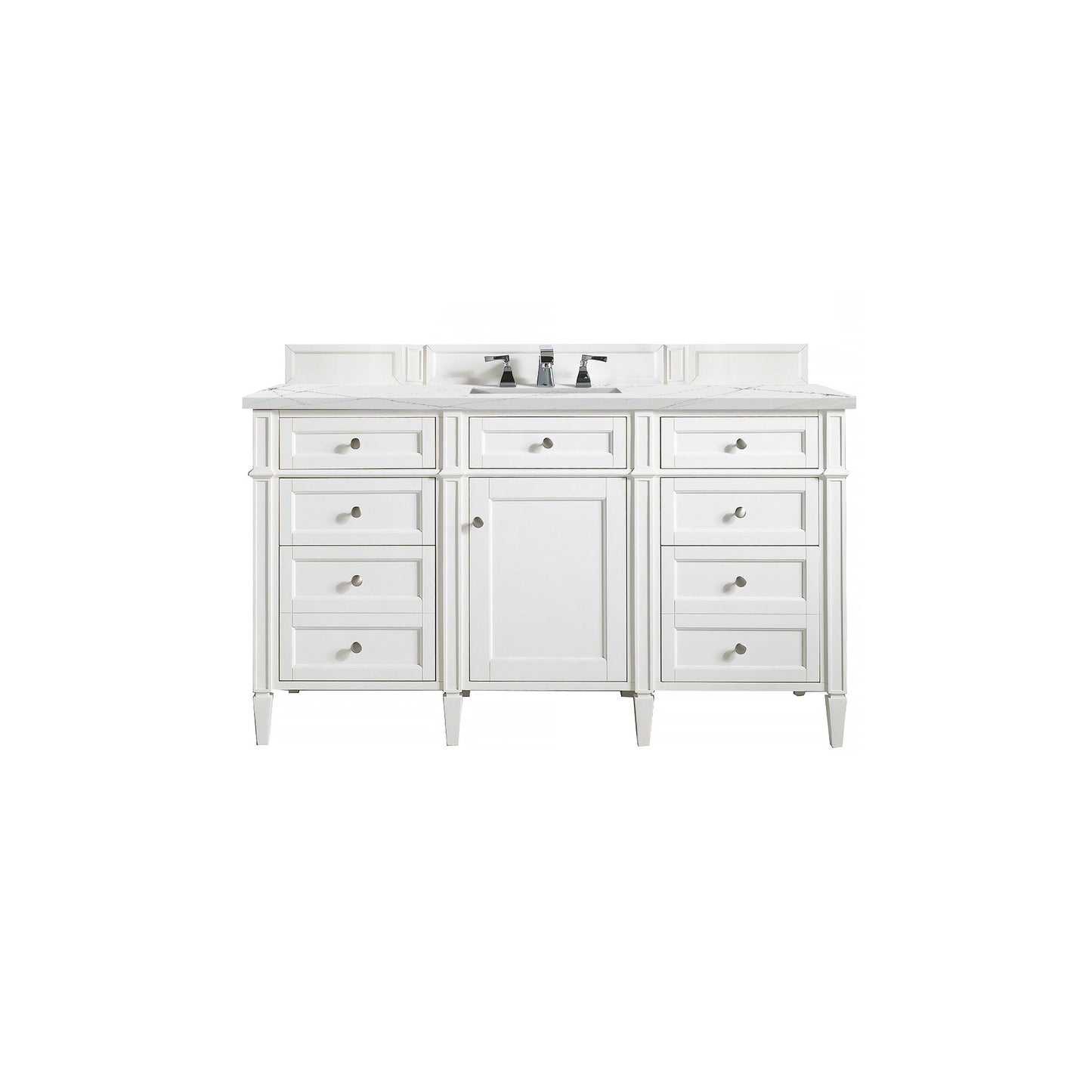 James Martin Vanities Brittany 60" Bright White Single Vanity With 3cm Ethereal Noctis Quartz Top
