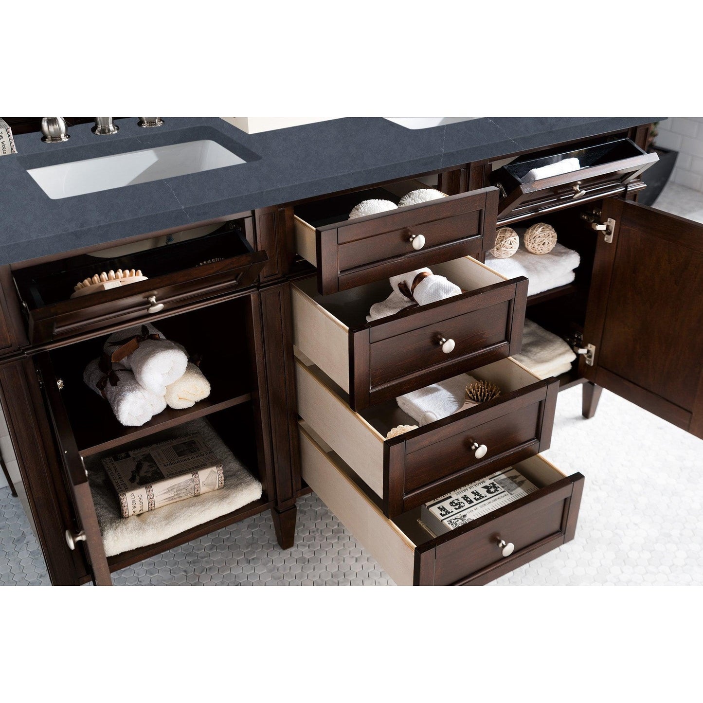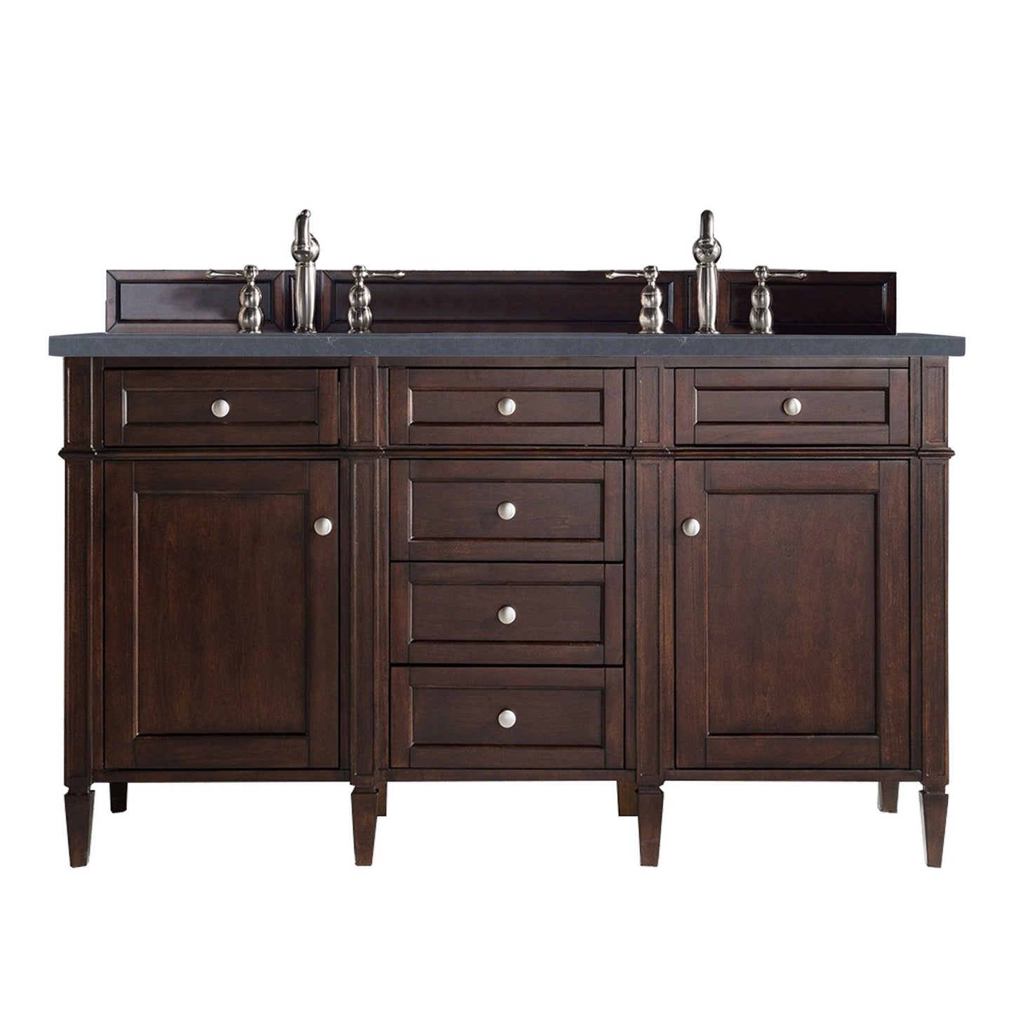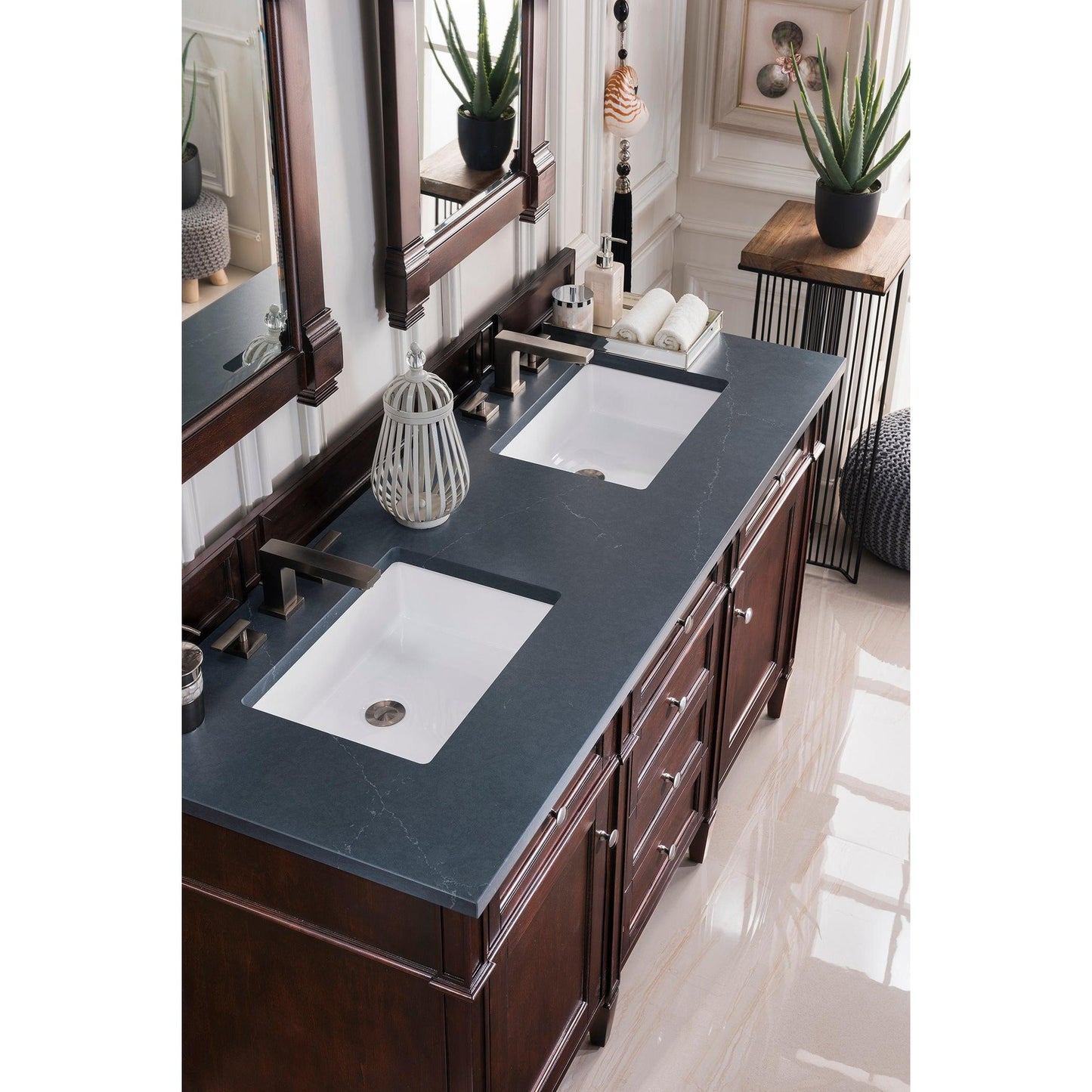 James Martin Vanities Brittany 60" Burnished Mahogany Double Vanity With 3cm Charcoal Soapstone Quartz Top