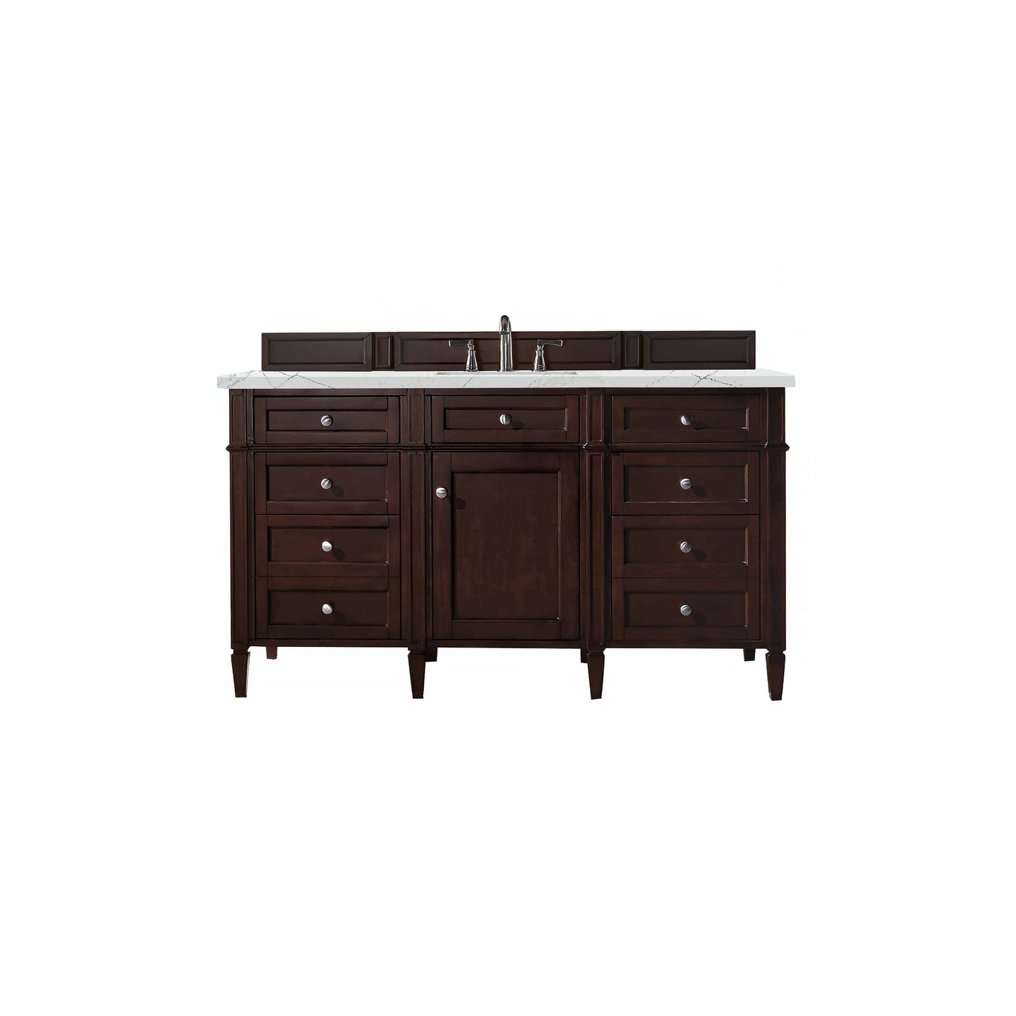 James Martin Vanities Brittany 60" Burnished Mahogany Single Vanity With 3cm Ethereal Noctis Quartz Top