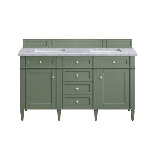 James Martin Vanities Brittany 60" Smokey Celadon Double Vanity With 3cm Carrara Marble Top