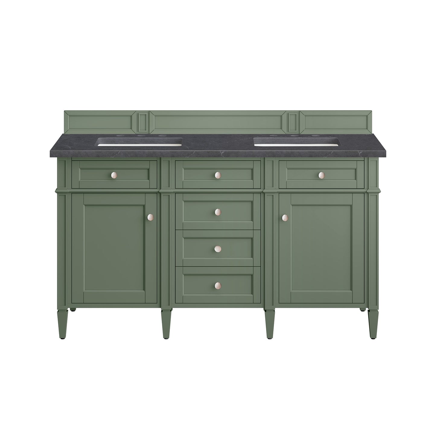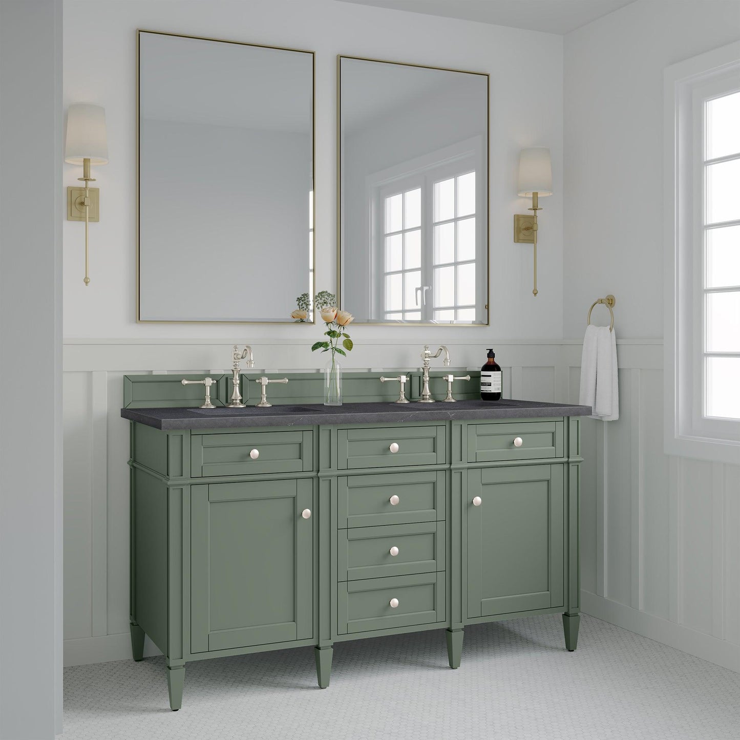 James Martin Vanities Brittany 60" Smokey Celadon Double Vanity With 3cm Charcoal Soapstone Top