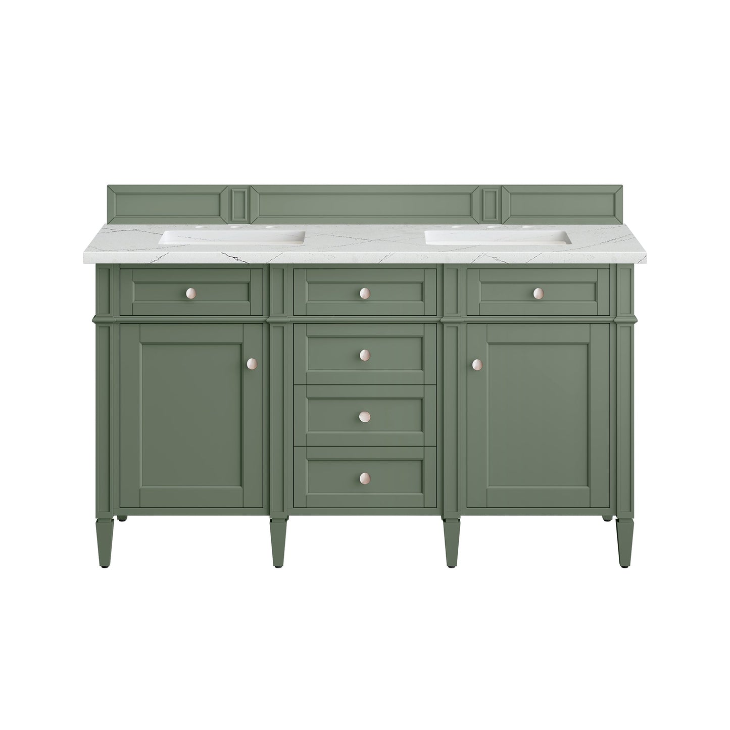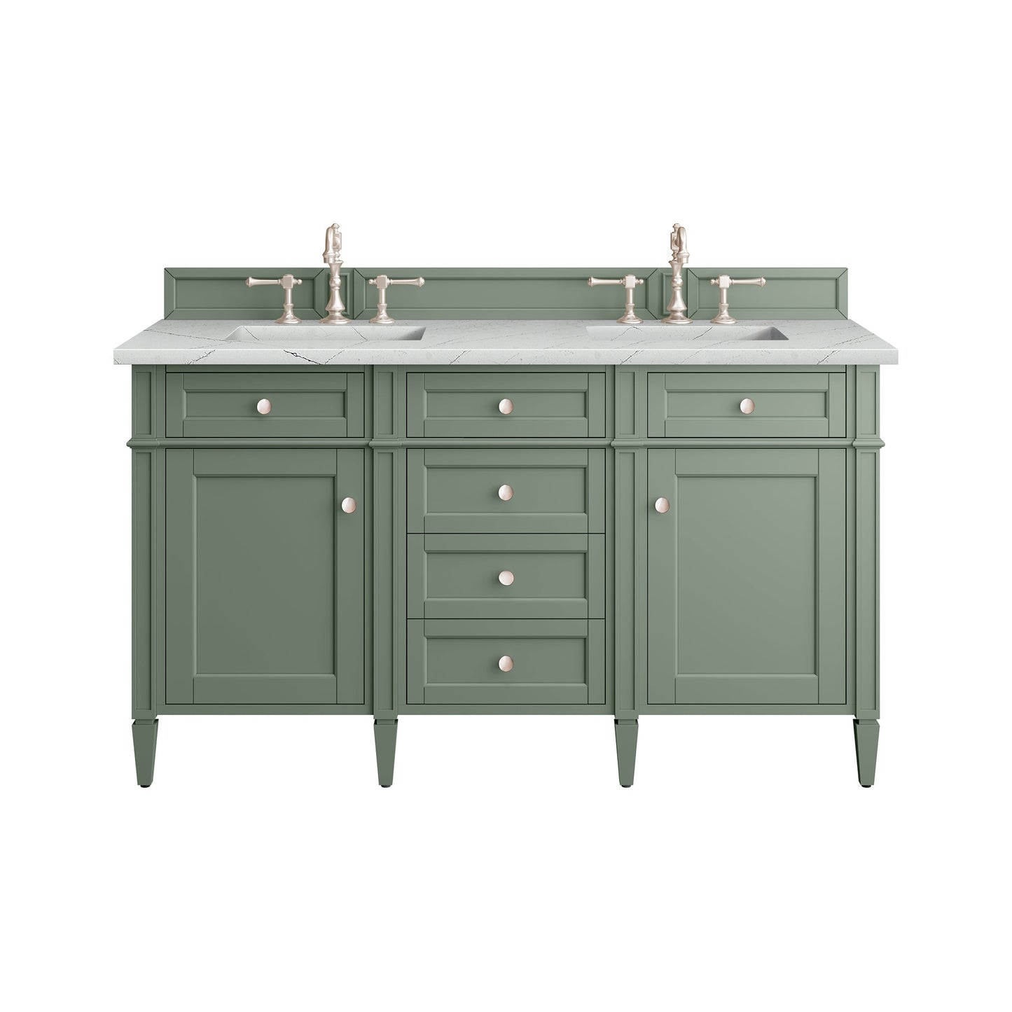 James Martin Vanities Brittany 60" Smokey Celadon Double Vanity With 3cm Ethereal Noctis Top