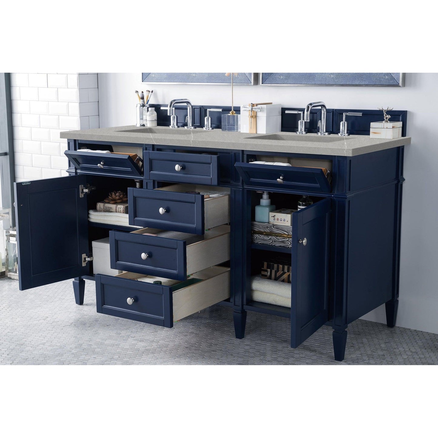 James Martin Vanities Brittany 60" Victory Blue Double Vanity With 3cm Eternal Serena Quartz Top