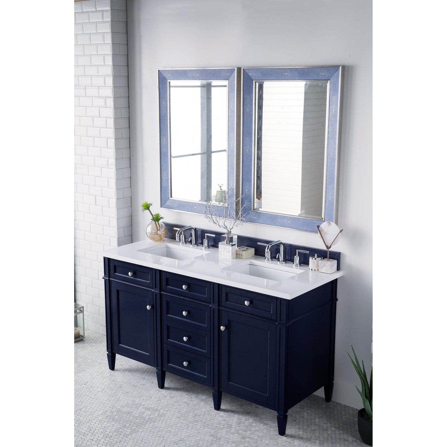 James Martin Vanities Brittany 60" Victory Blue Double Vanity With 3cm White Zeus Quartz Top