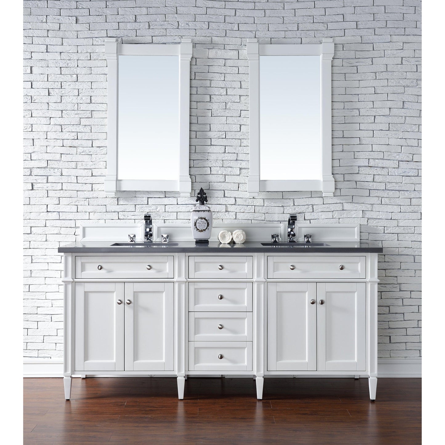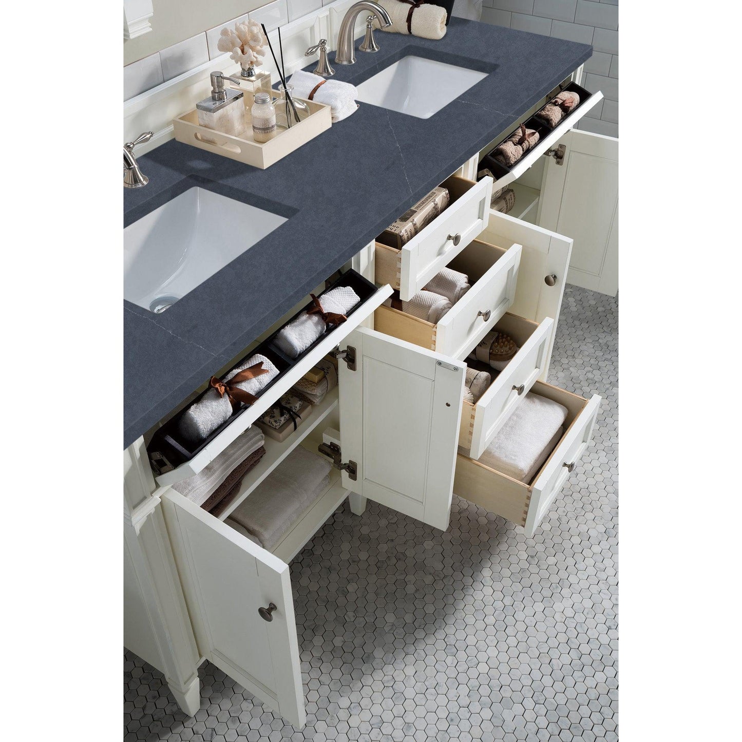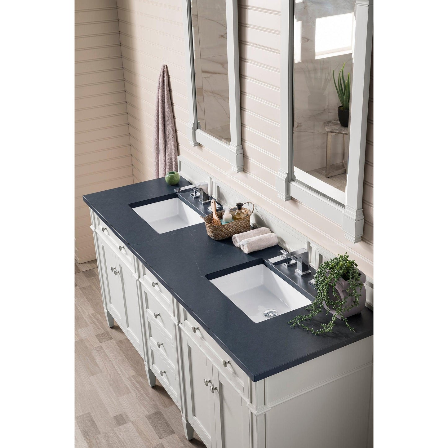 James Martin Vanities Brittany 72" Bright White Double Vanity With 3cm Charcoal Soapstone Quartz Top