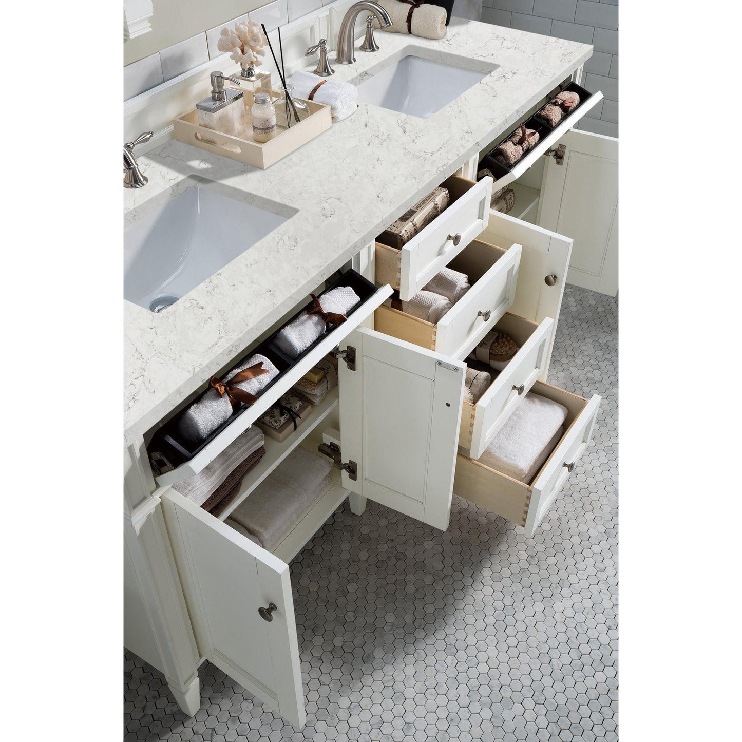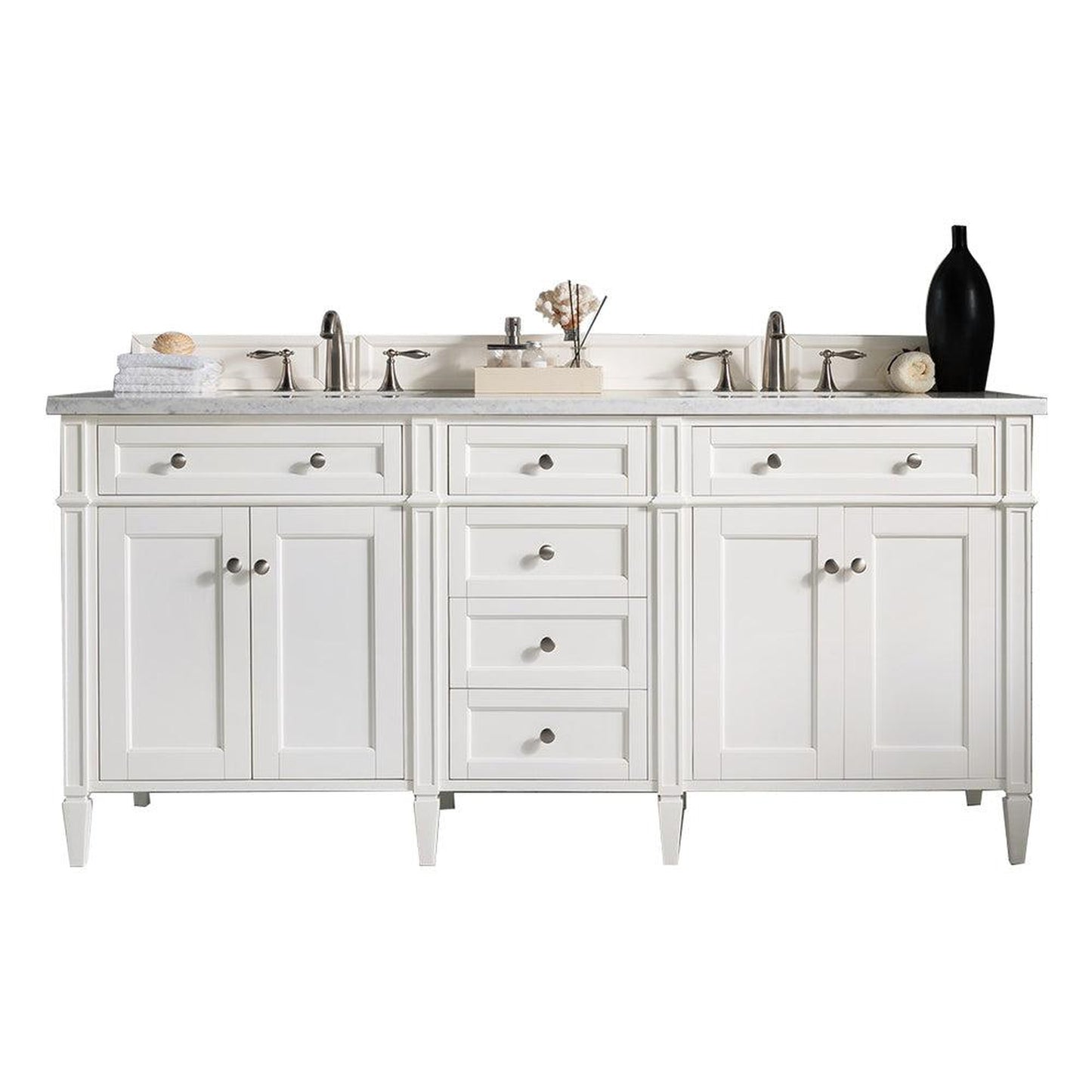 James Martin Vanities Brittany 72" Bright White Double Vanity With 3cm Eternal Jasmine Pearl Quartz Top