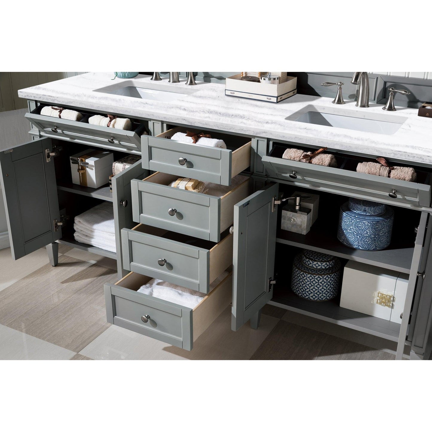James Martin Vanities Brittany 72" Urban Gray Double Vanity With 3cm Arctic Fall Solid Surface Top