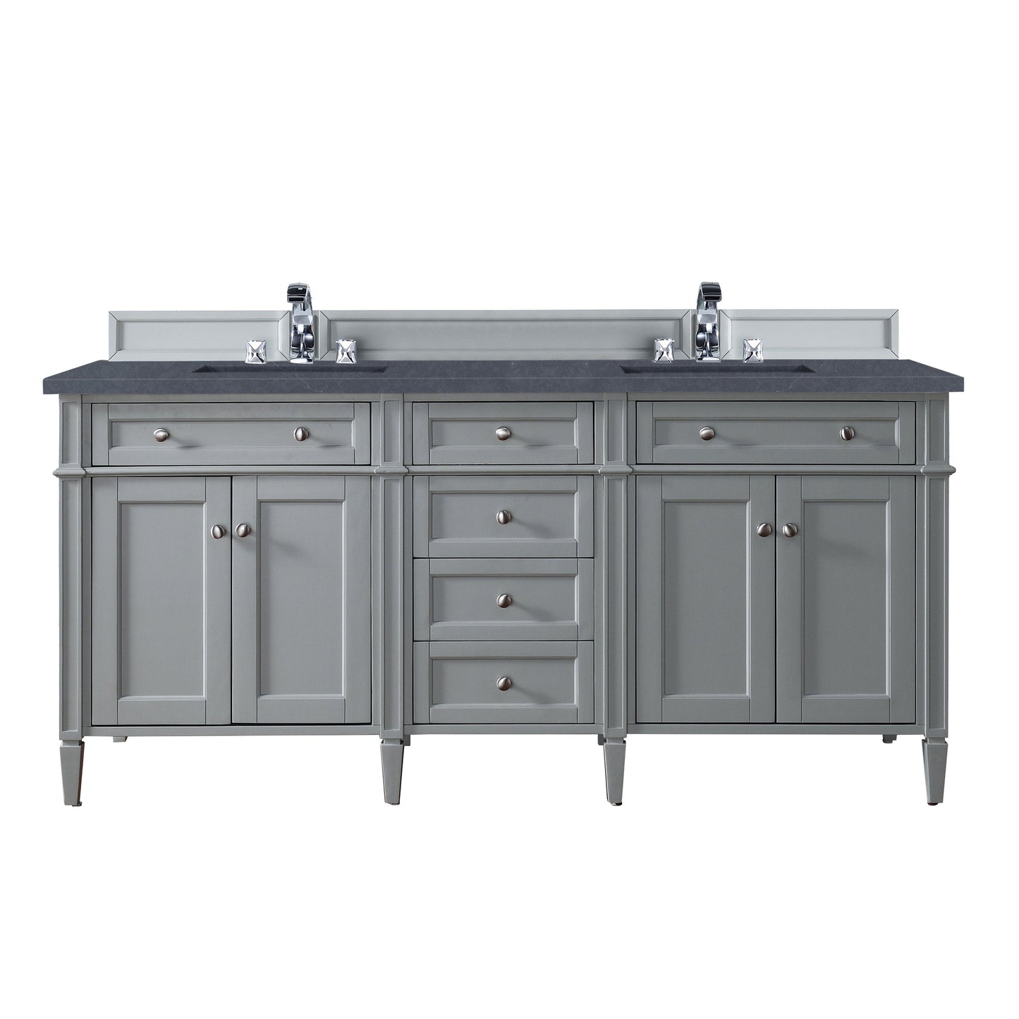 James Martin Vanities Brittany 72" Urban Gray Double Vanity With 3cm Charcoal Soapstone Quartz Top