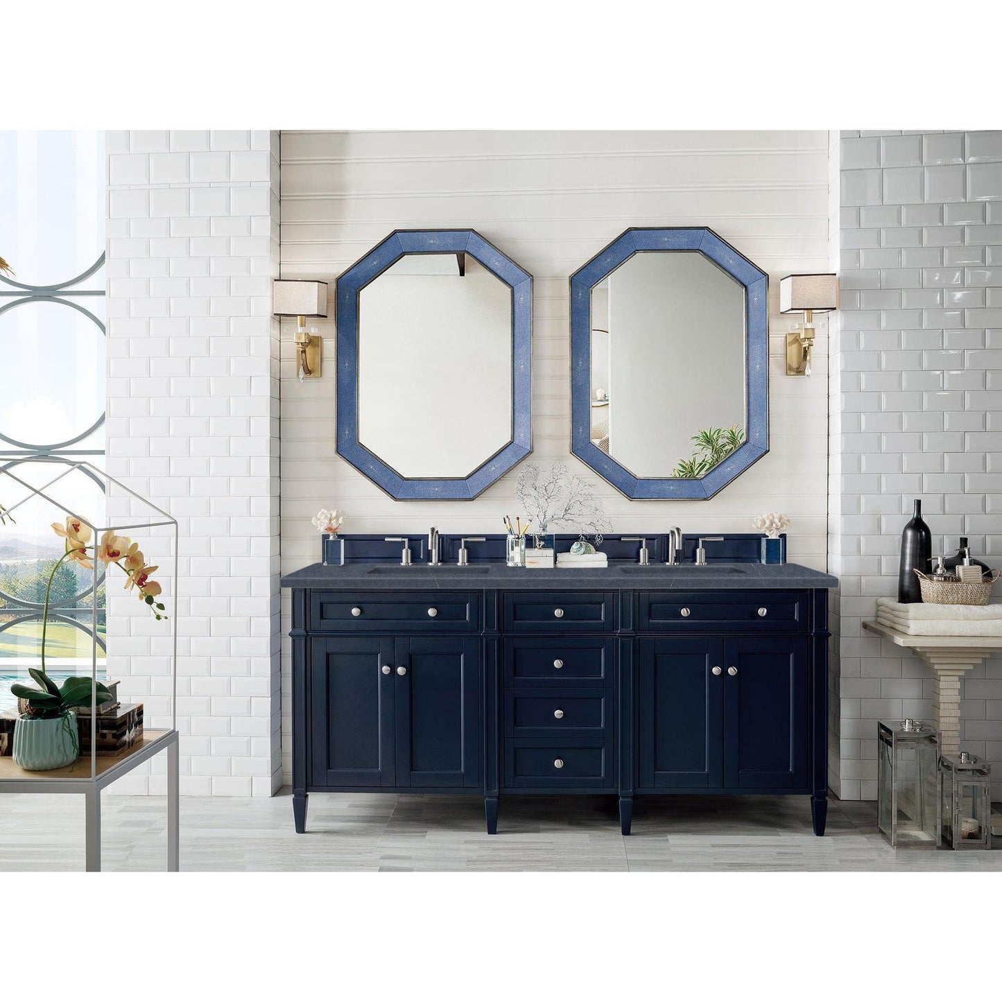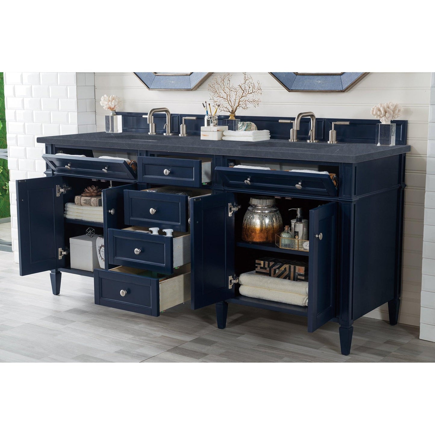 James Martin Vanities Brittany 72" Victory Blue Double Vanity With 3cm Charcoal Soapstone Quartz Top