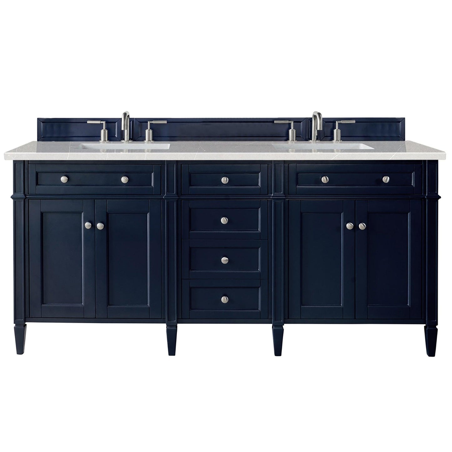 James Martin Vanities Brittany 72" Victory Blue Double Vanity With 3cm Eternal Serena Quartz Top
