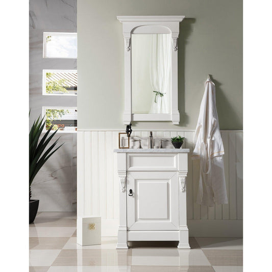 James Martin Vanities Brookfield 26" Bright White Single Vanity With 3cm Carrara Marble Top