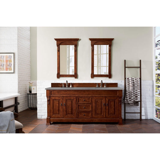 James Martin Vanities Brookfield 72" Warm Cherry Double Vanity With 3cm Grey Expo Quartz Top