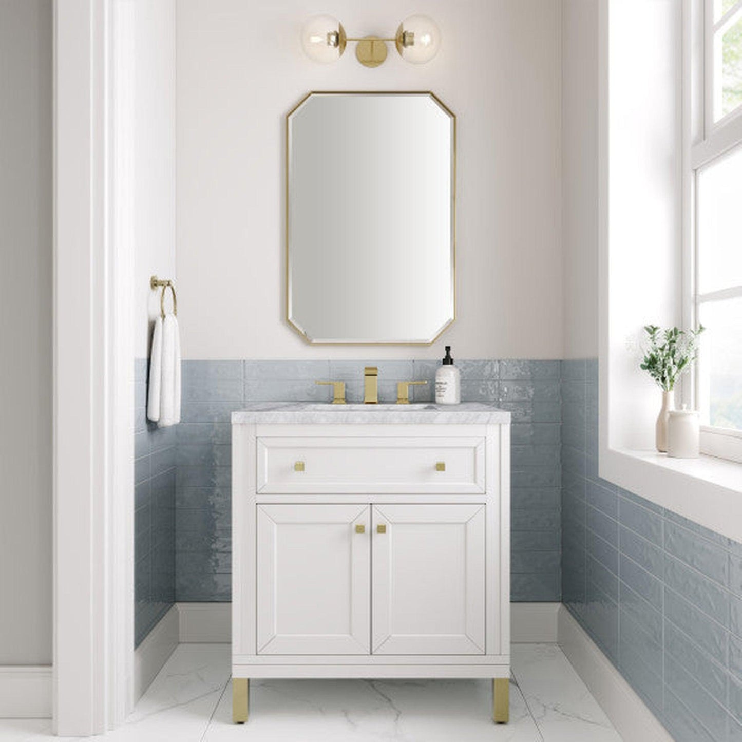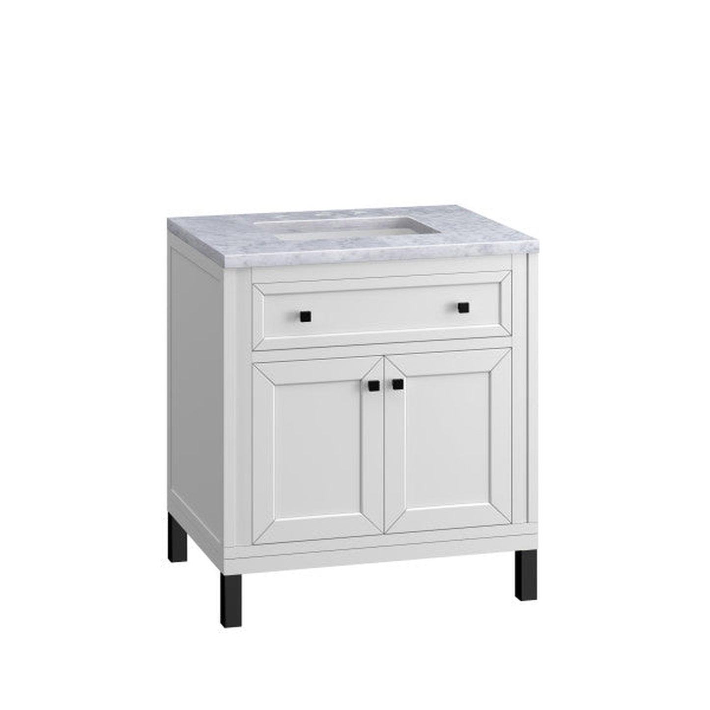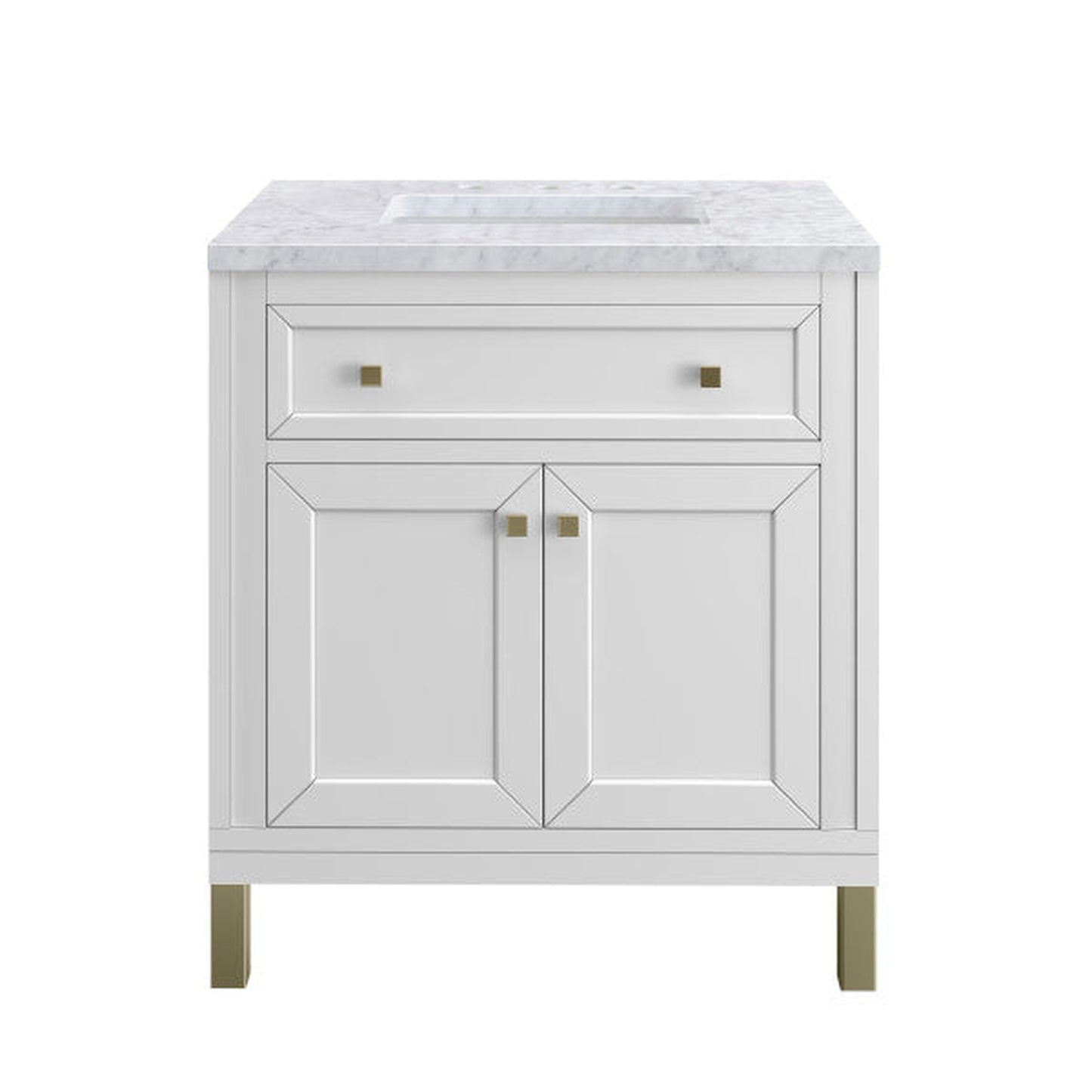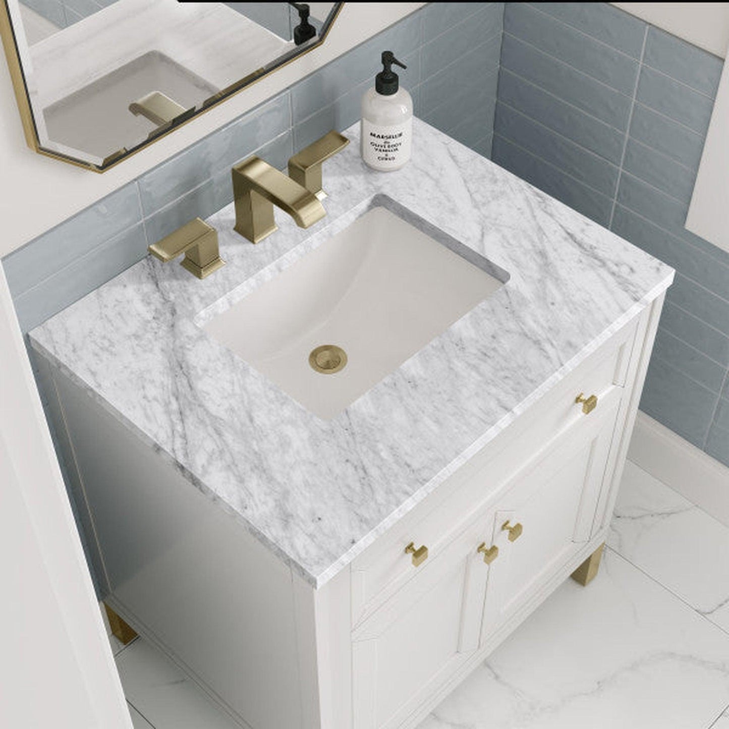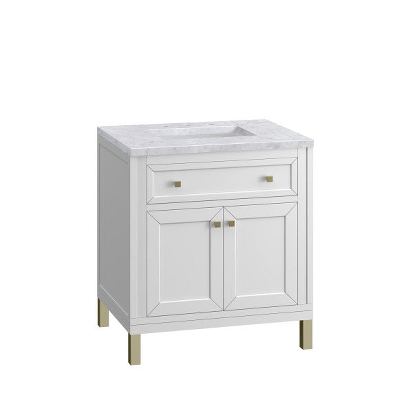 James Martin Vanities Chicago 30" Glossy White Single Vanity With 3cm Carrara Marble Top