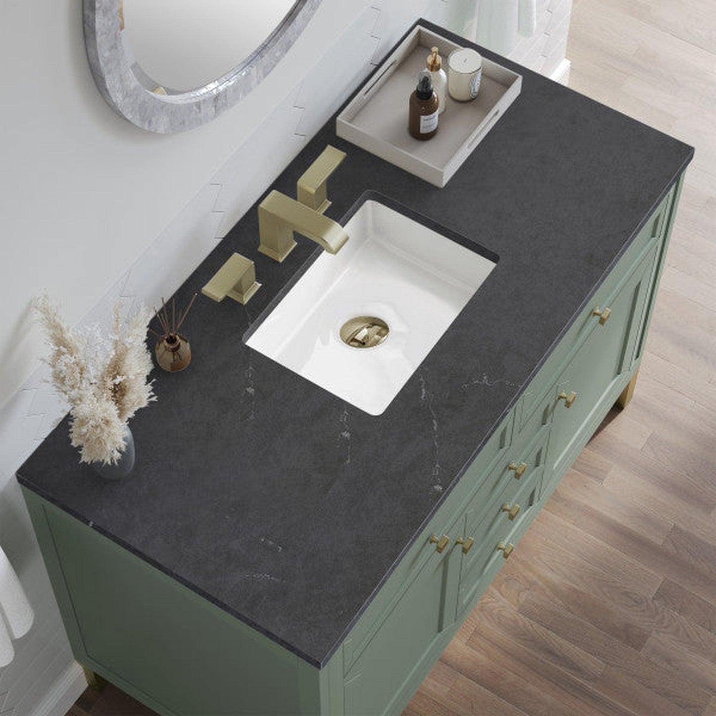 James Martin Vanities Chicago 48" Smokey Celadon Single Vanity With 3cm Charcoal Soapstone Top