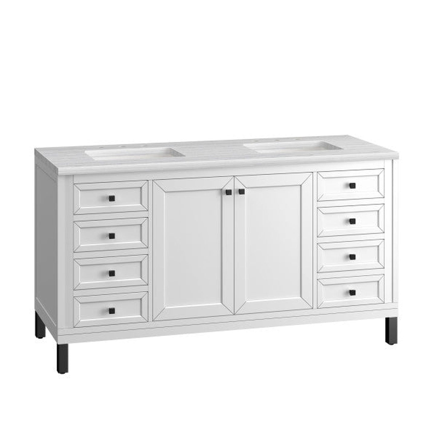James Martin Vanities Chicago 60" Glossy White Double Vanity With 3cm Arctic Fall Top
