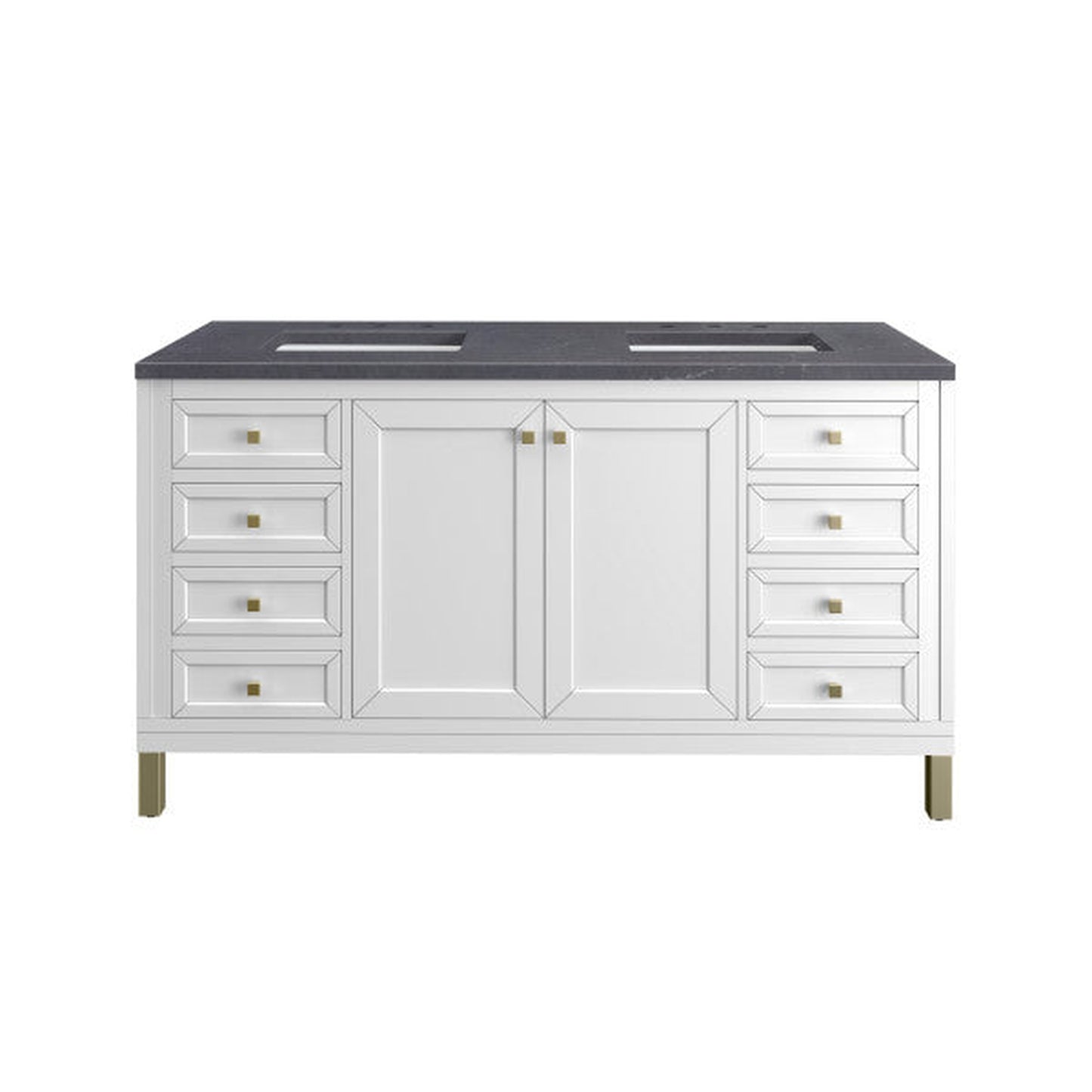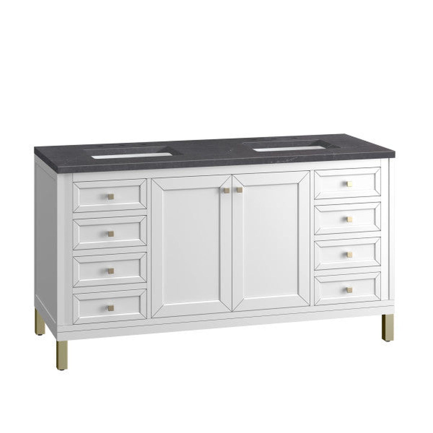 James Martin Vanities Chicago 60" Glossy White Double Vanity With 3cm Charcoal Soapstone Top
