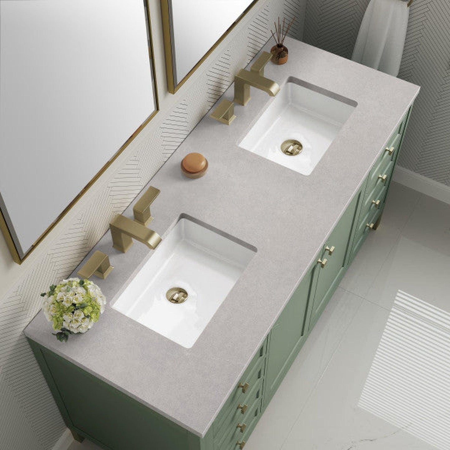 James Martin Vanities Chicago 60" Smokey Celadon Double Vanity With 3cm Eternal Serena Top