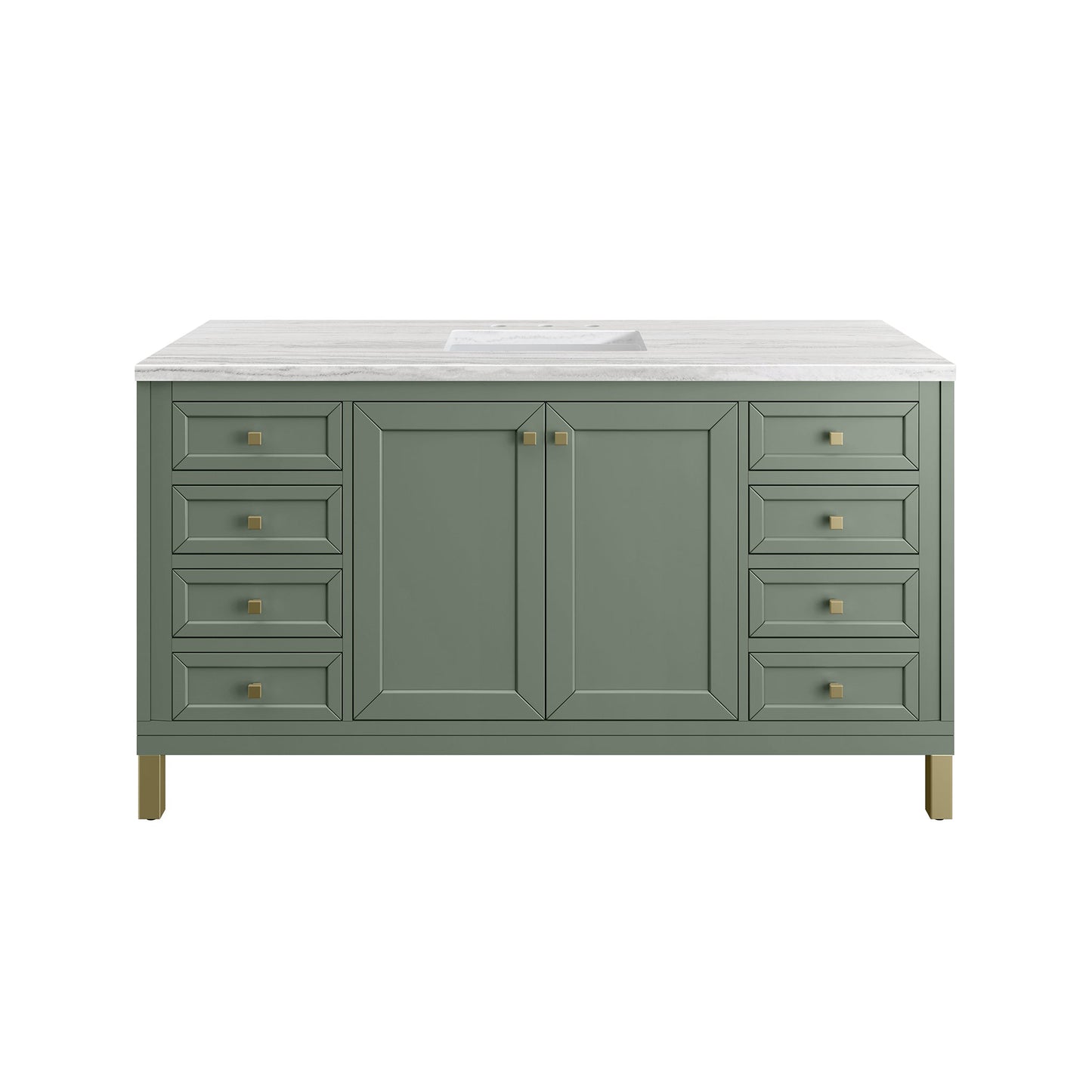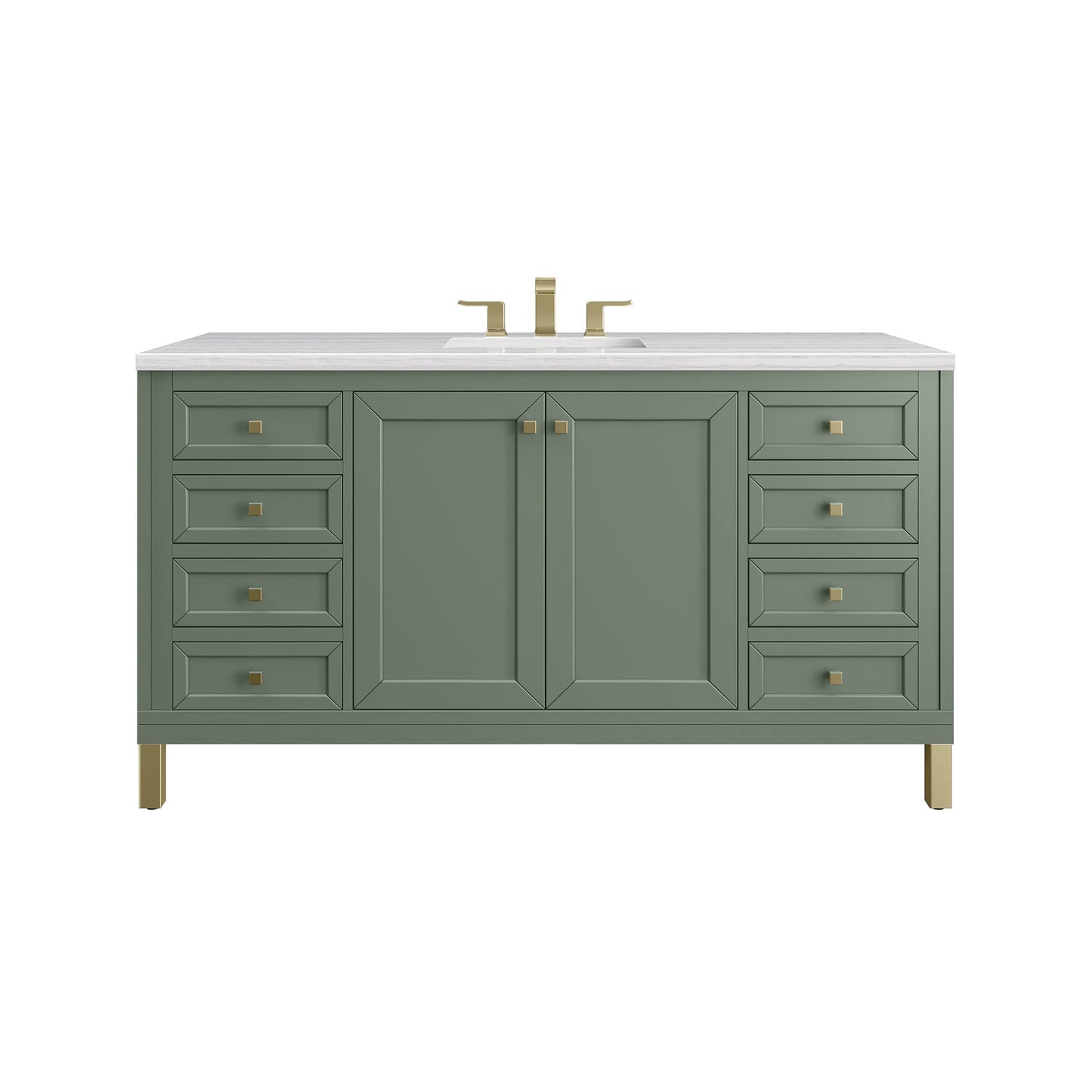 James Martin Vanities Chicago 60" Smokey Celadon Single Vanity With 3cm Arctic Fall Top
