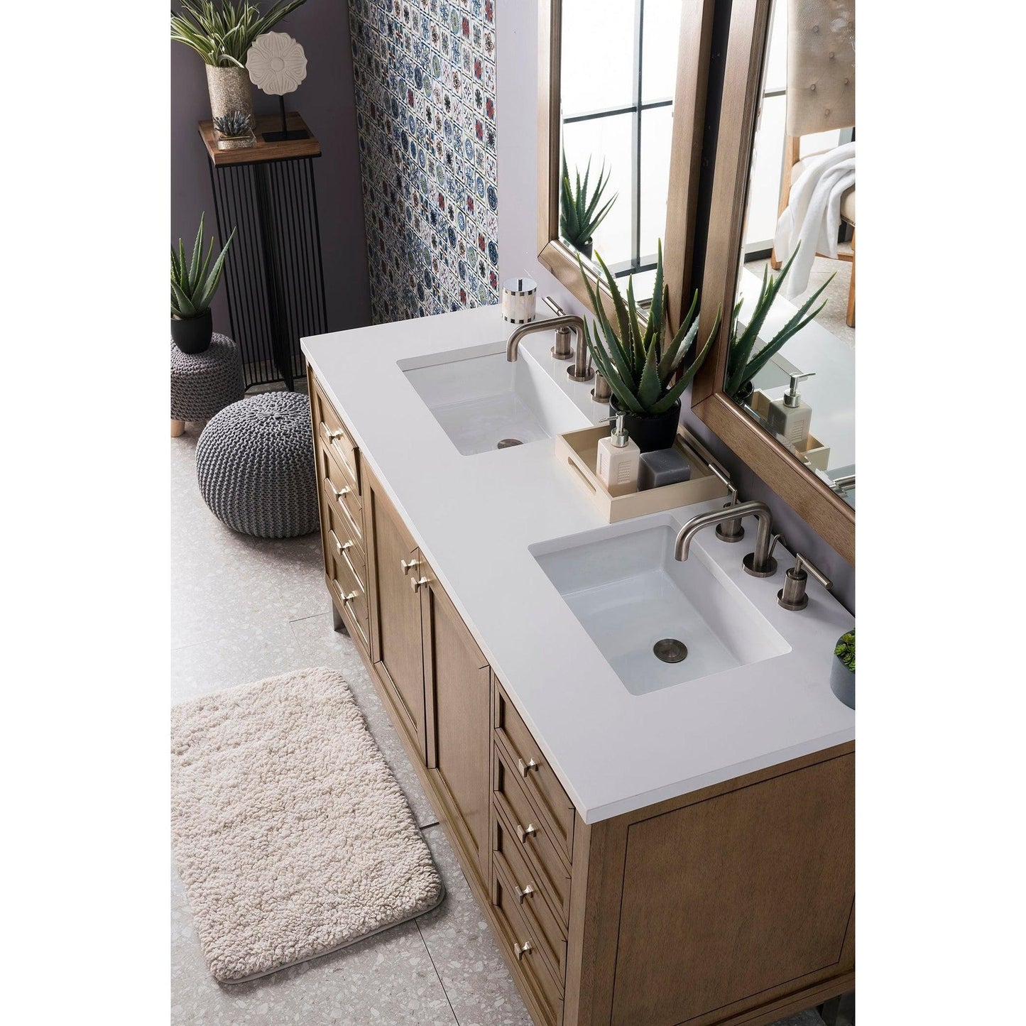 James Martin Vanities Chicago 60" Whitewashed Walnut Double Vanity With 3cm White Zeus Quartz Top