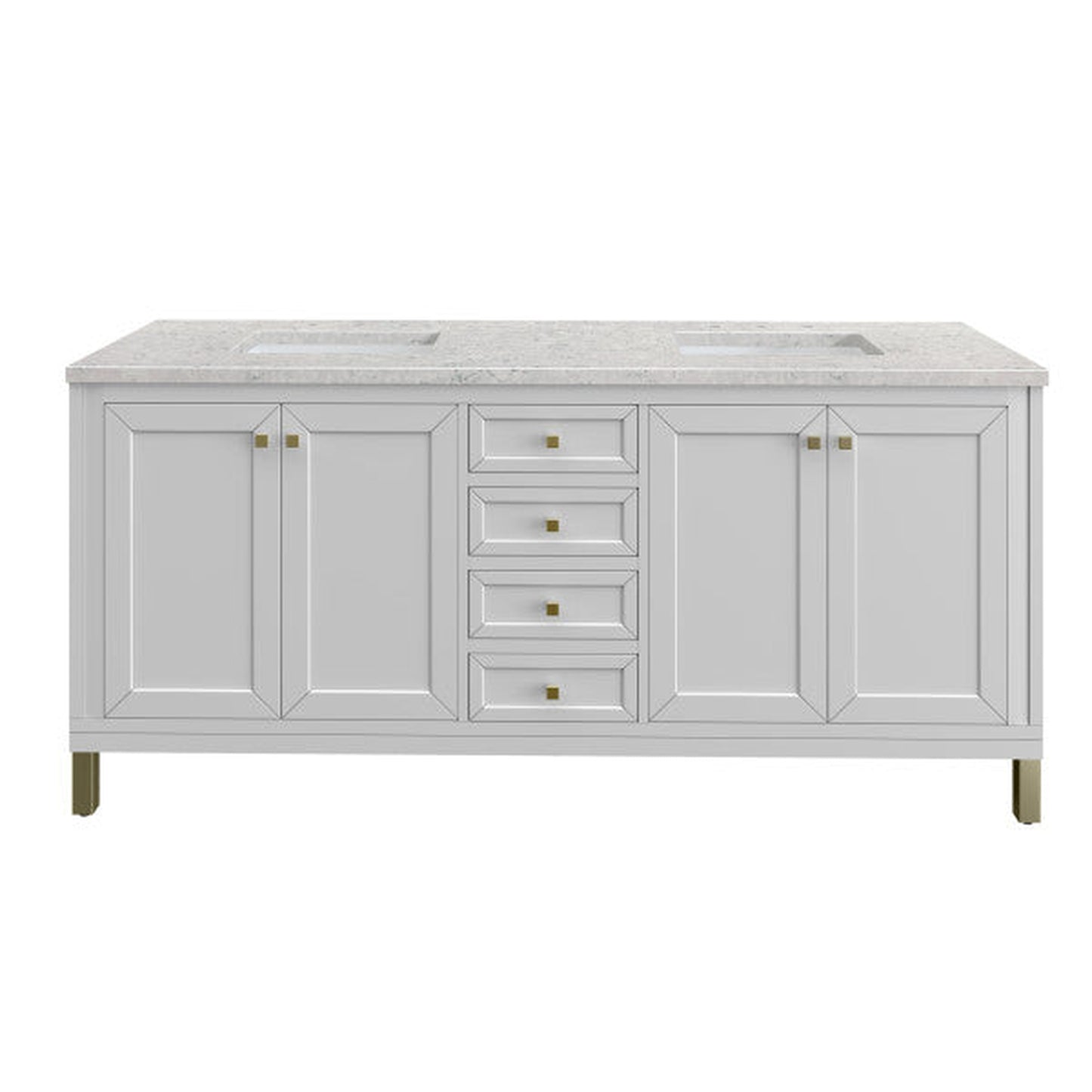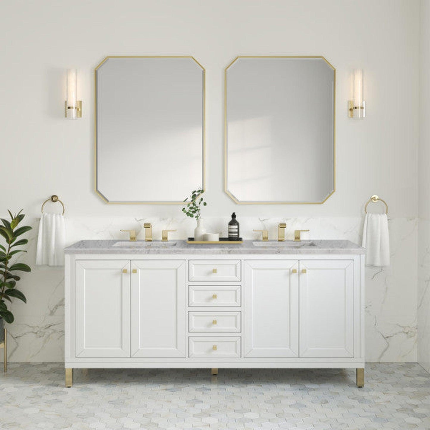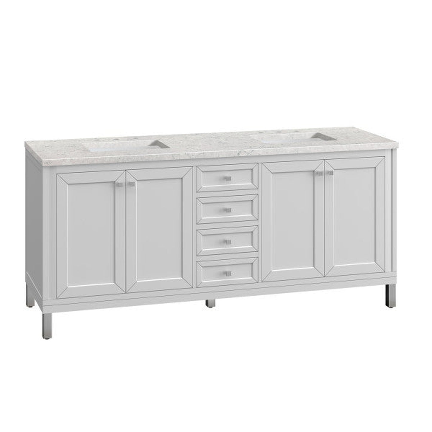 James Martin Vanities Chicago 72" Glossy White Double Vanity With 3cm Eternal Jasmine Pearl Top