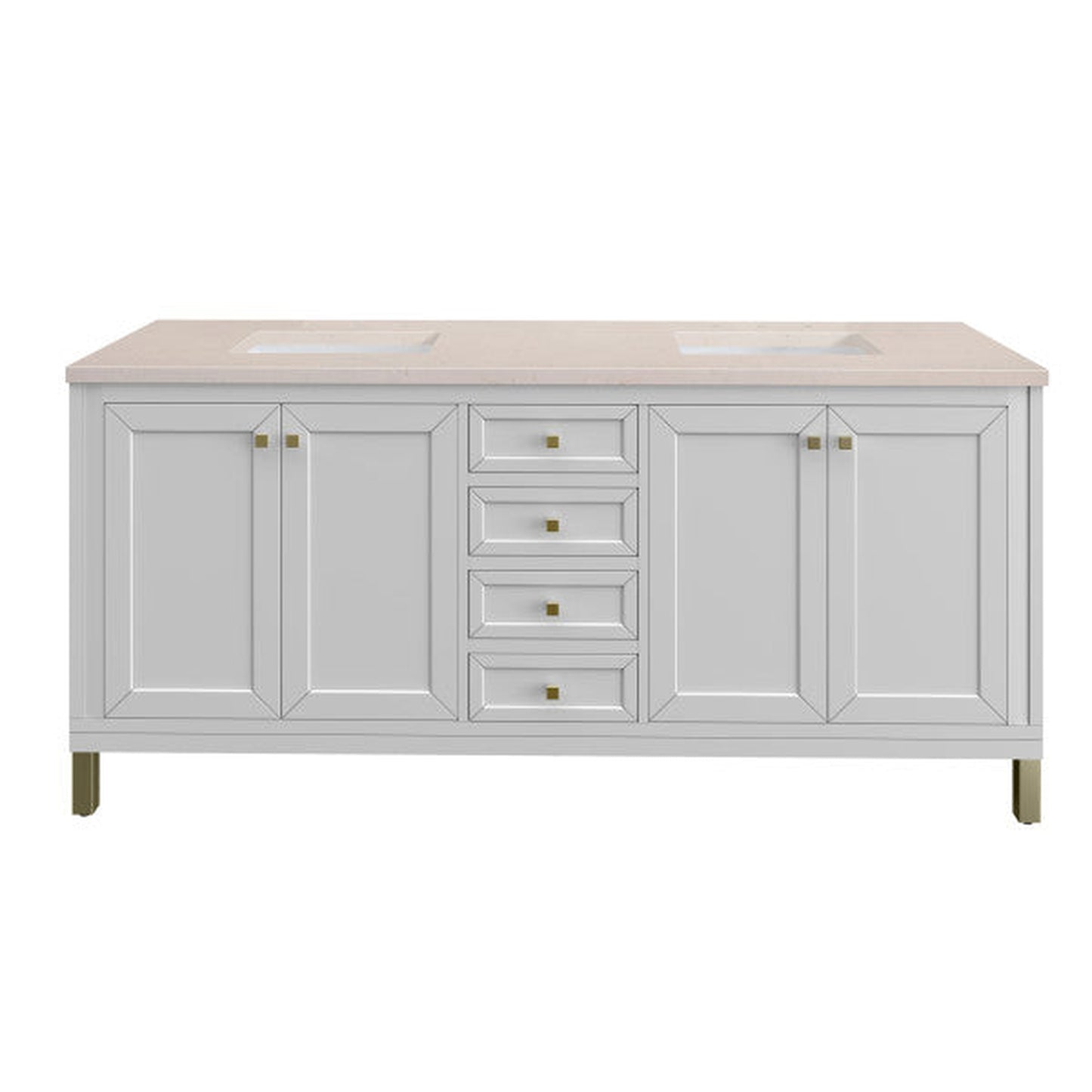 James Martin Vanities Chicago 72" Glossy White Double Vanity With 3cm Eternal Marfil Top