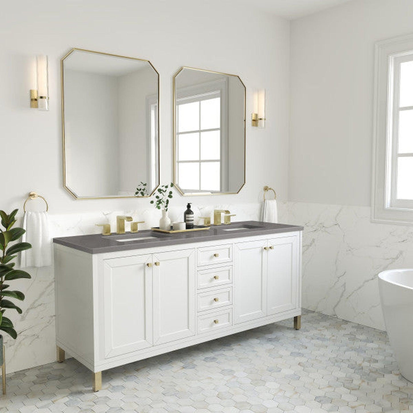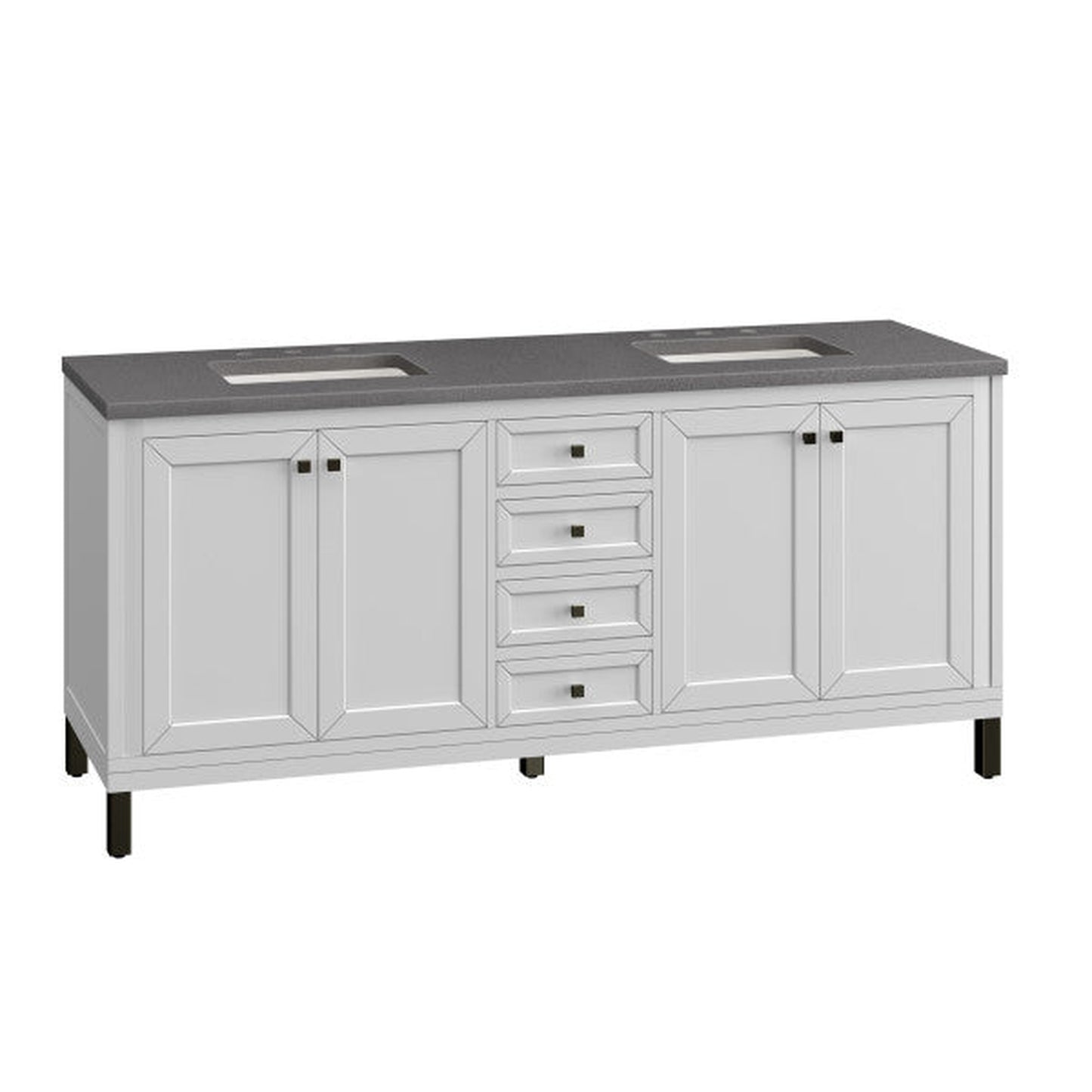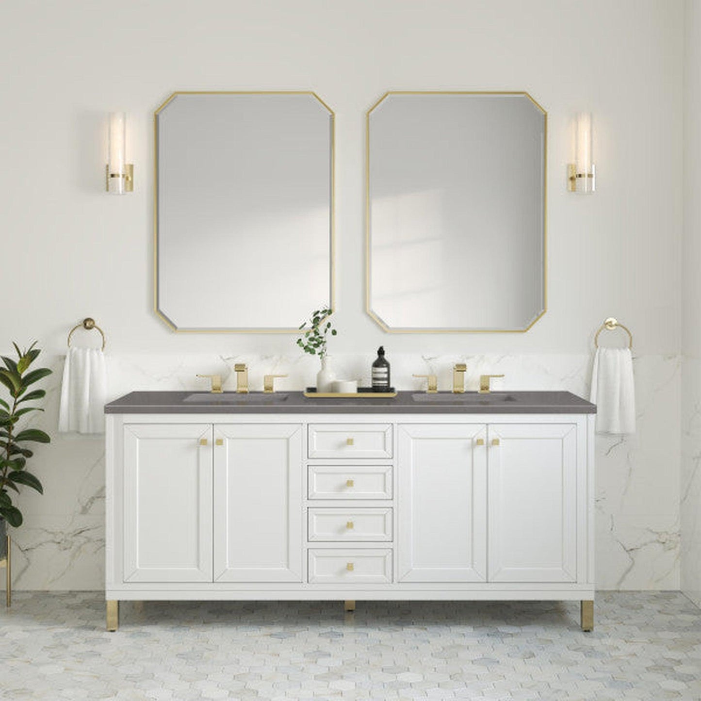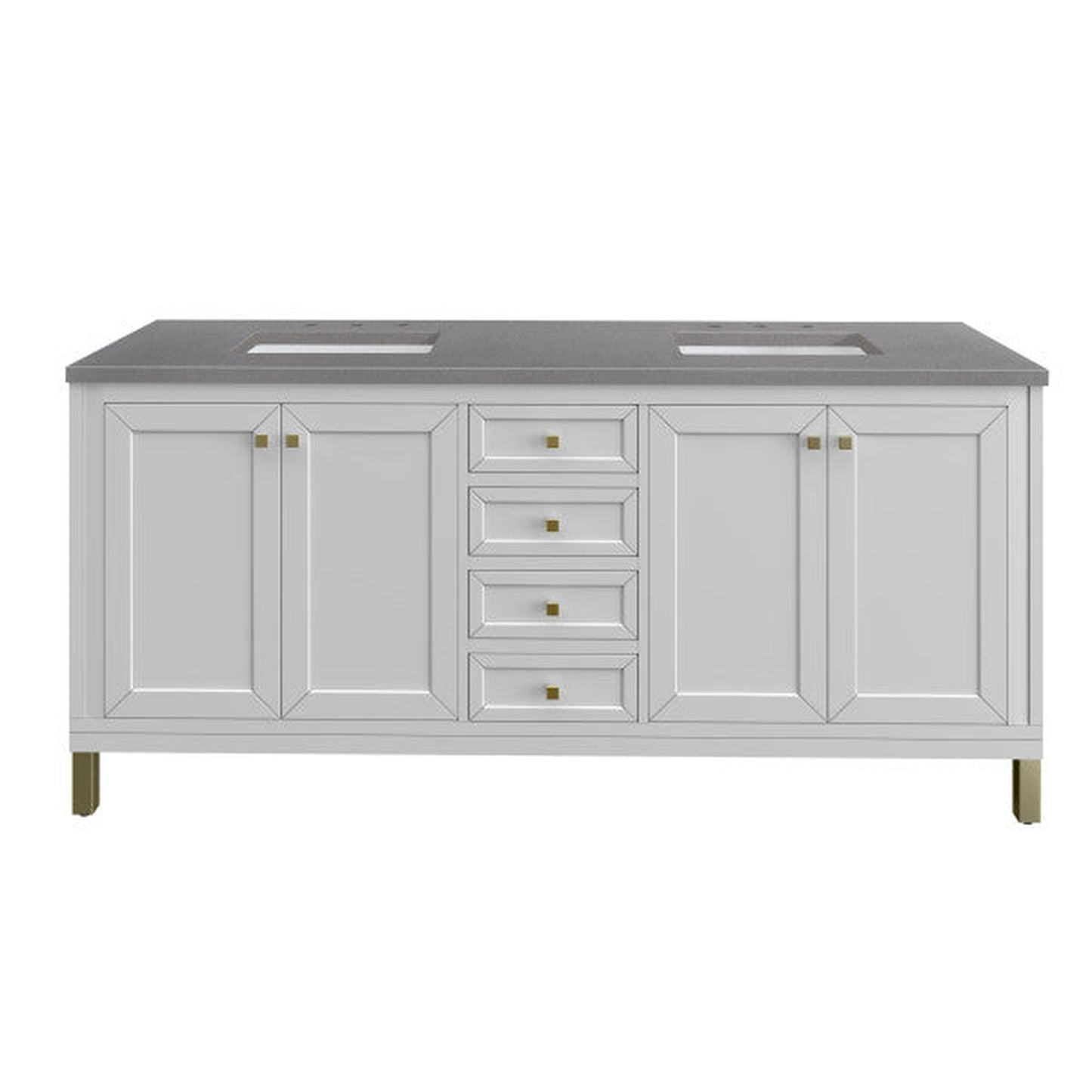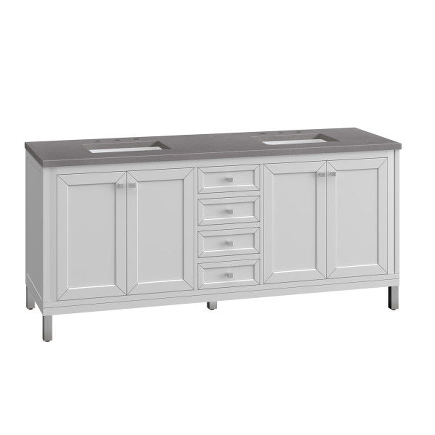 James Martin Vanities Chicago 72" Glossy White Double Vanity With 3cm Grey Expo Top