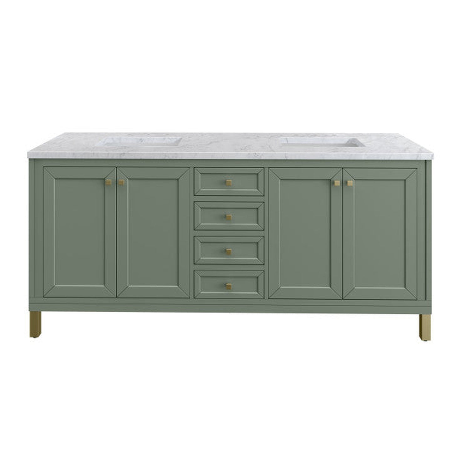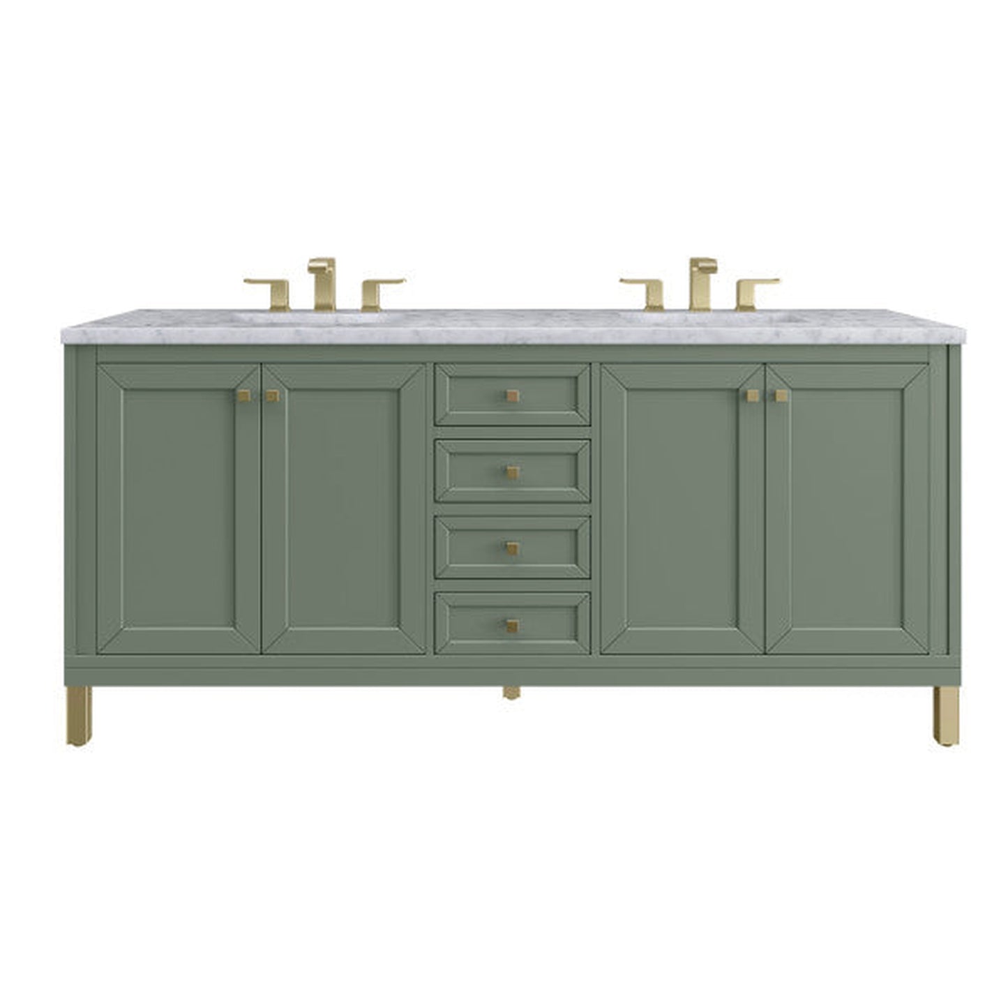 James Martin Vanities Chicago 72" Smokey Celadon Double Vanity With 3cm Carrara Marble Top