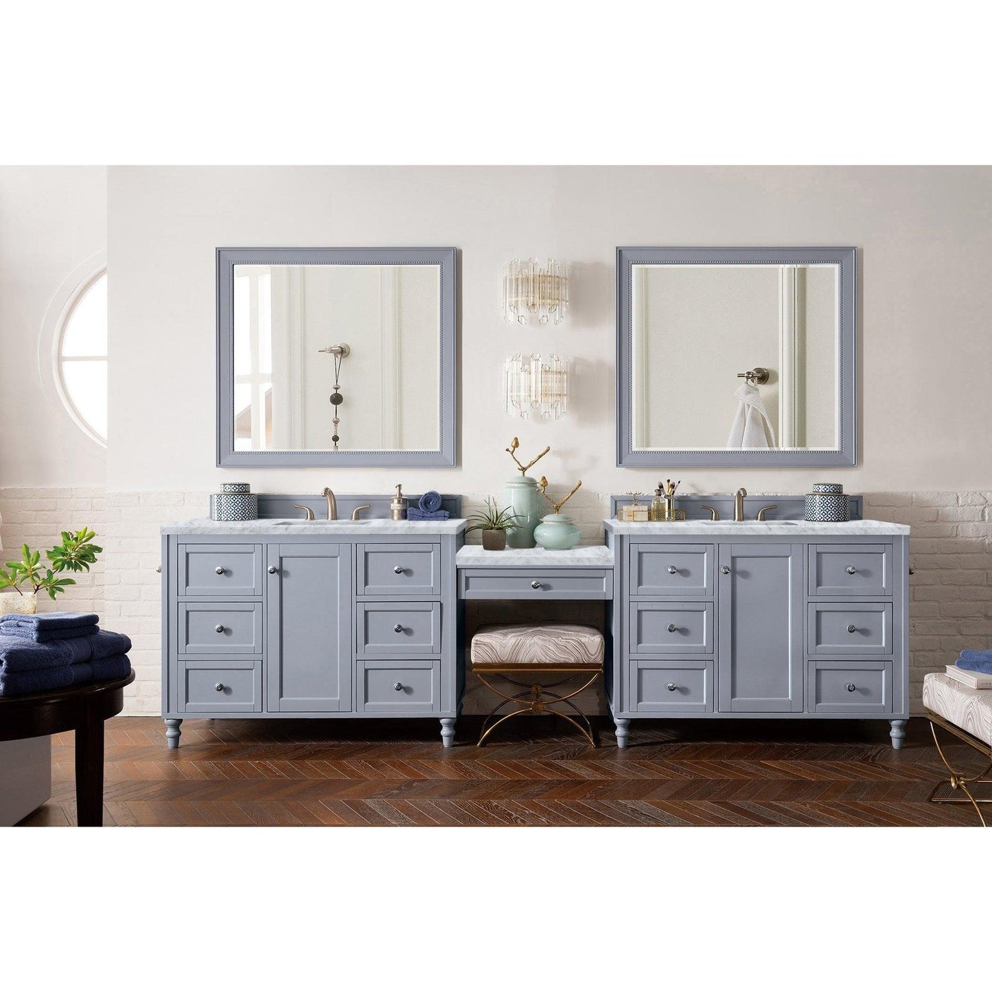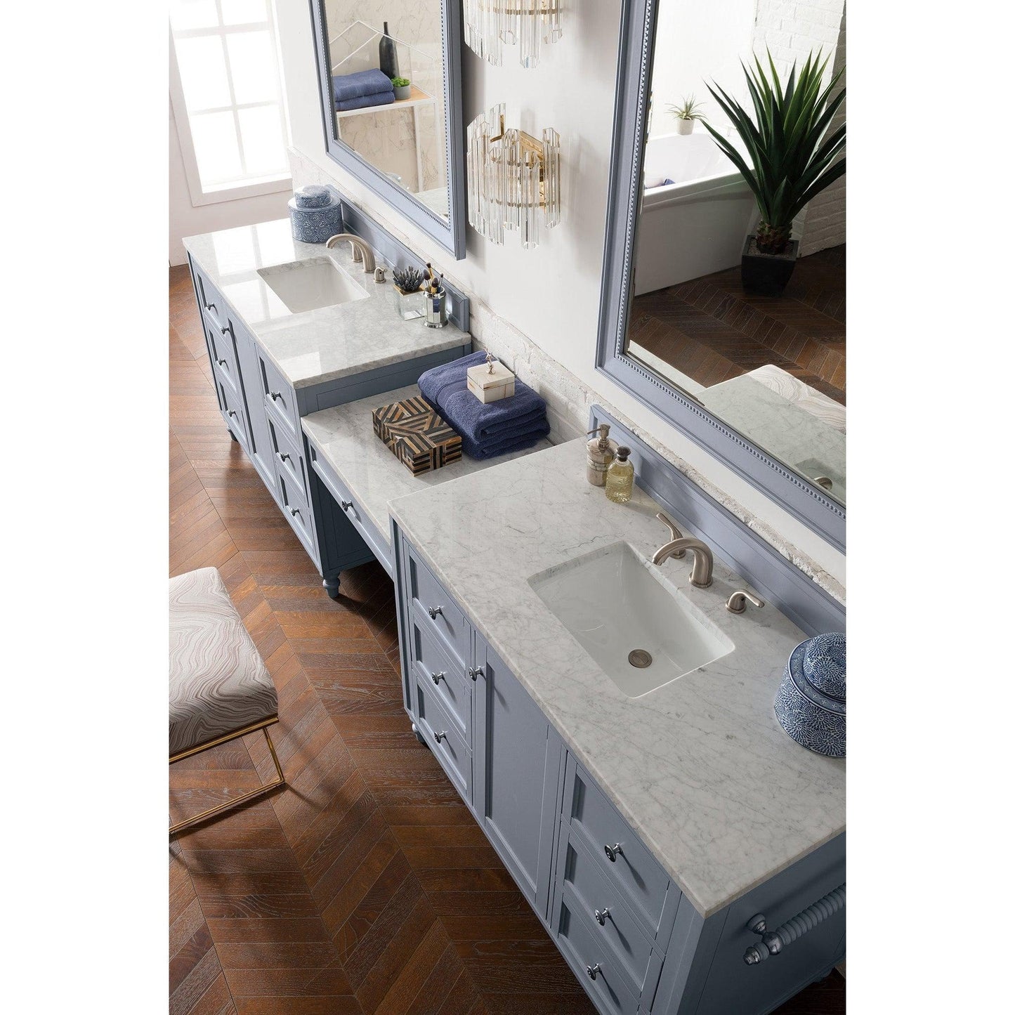 James Martin Vanities Copper Cove Encore 122" Silver Gray Double Vanity Set With Makeup Table, 3cm Carrara Marble Top