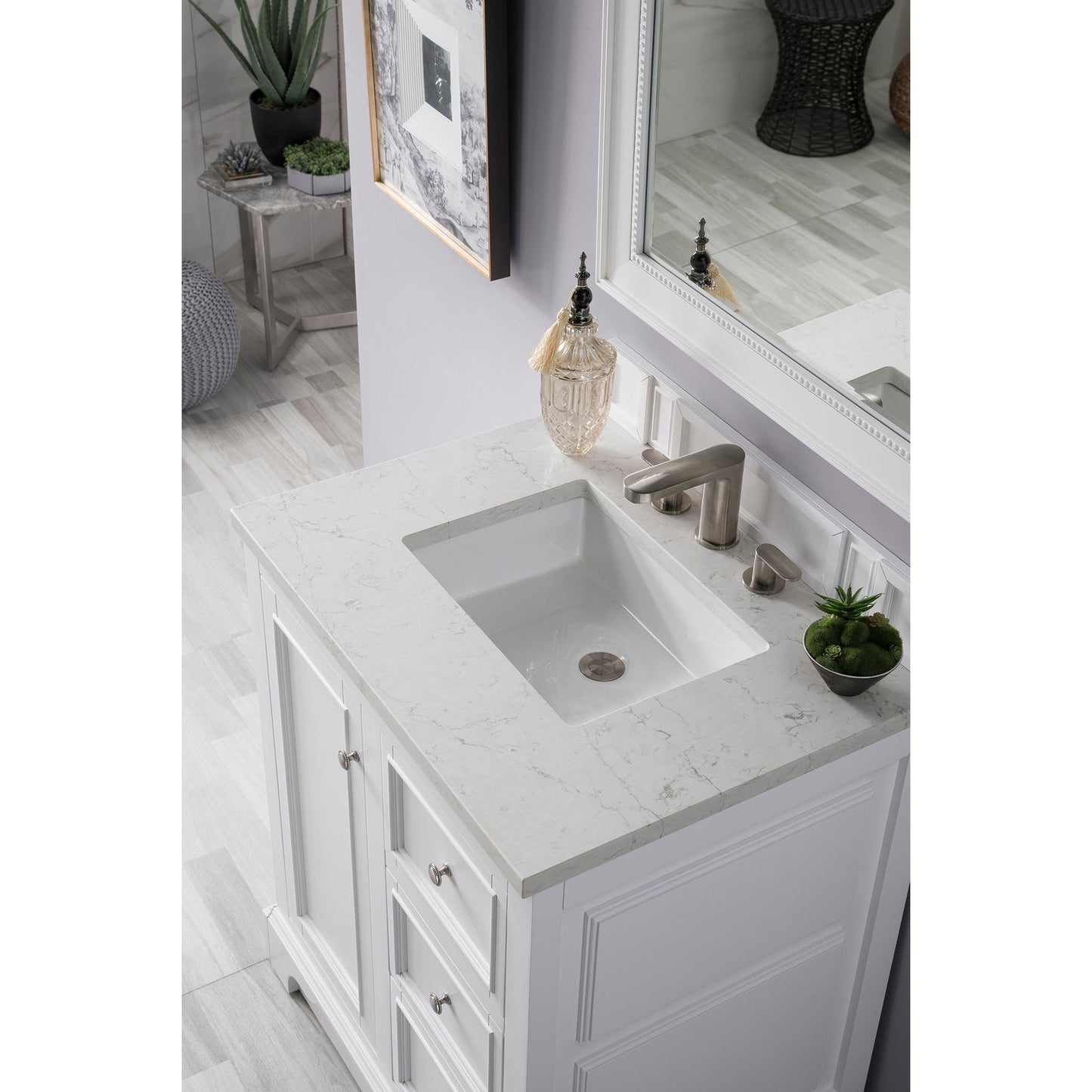 James Martin Vanities De Soto 30" Bright White Single Vanity With 3cm Eternal Jasmine Pearl Quartz Top